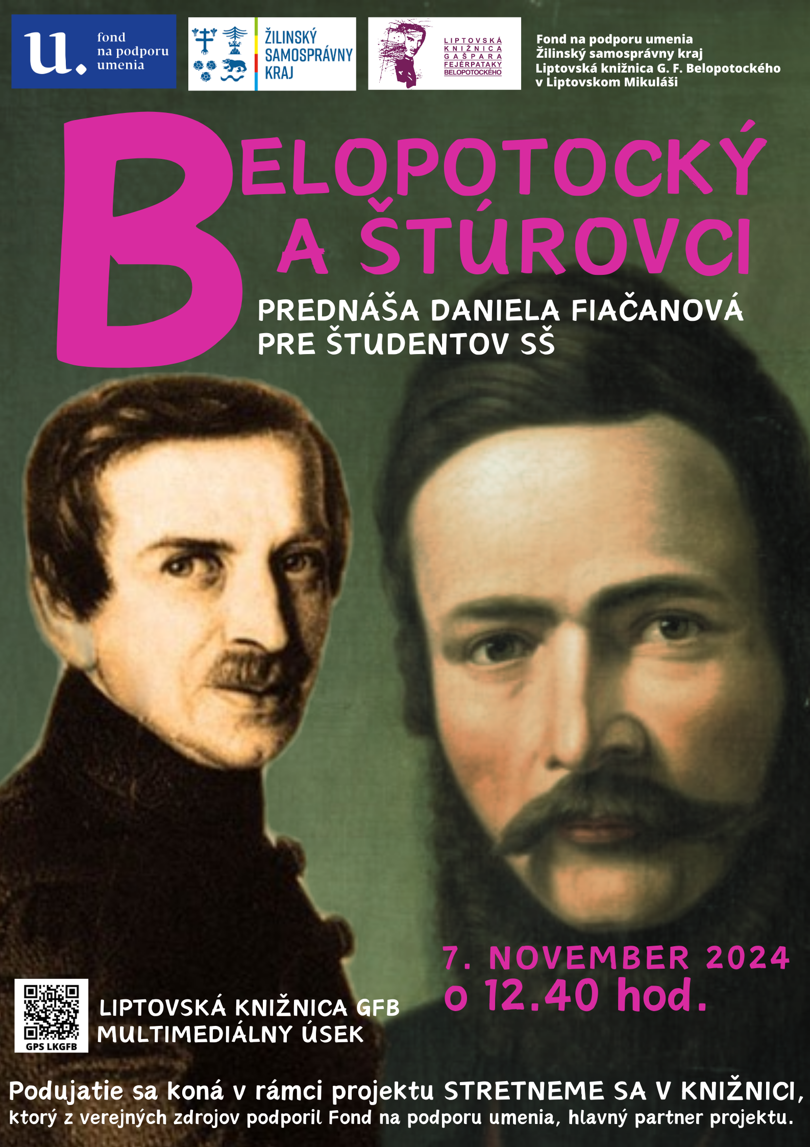 Belopotocký a štúrovci - prednáška Daniely Fiačanovej pre študentov SŠ; 7. november 2024 o 12.40 hod. v multimediálnom úseku knižnice.