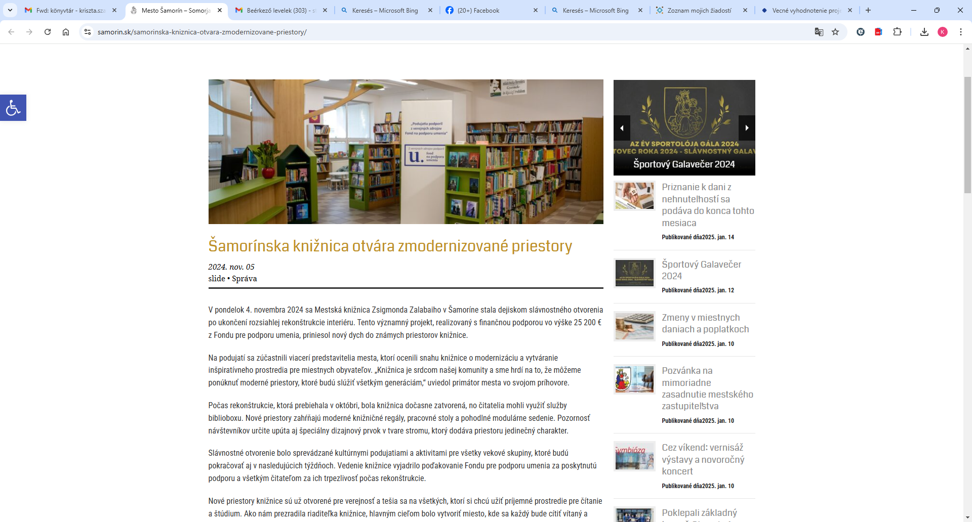 Obnova interiérového vybavenia Mestskej knižnice Zsigmonda Zalabaiho v Šamoríne