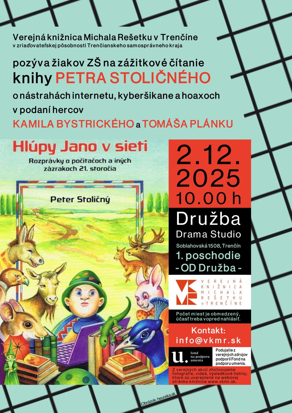 Hornonitrianska knižnica v Prievidzi prináša kúsok divadelného sveta priamo do Spojenej školy internátnej v Prievidzi. Podujatie sa uskutoční priamo v priestoroch školy, aby si deti so špeciálnymi potrebami mohli vychutnať zážitok z divadla v prostredí, ktoré poznajú a v ktorom sa cítia bezpečne.