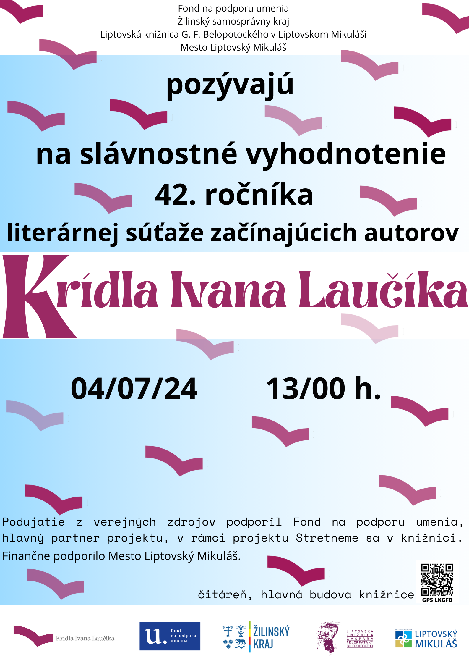 Vyhodnotenie 42. ročníka Literárnej súťaže začínajúcich autorov Krídla Ivana Laučíka; 4.7.2024 od 13,00 hod.