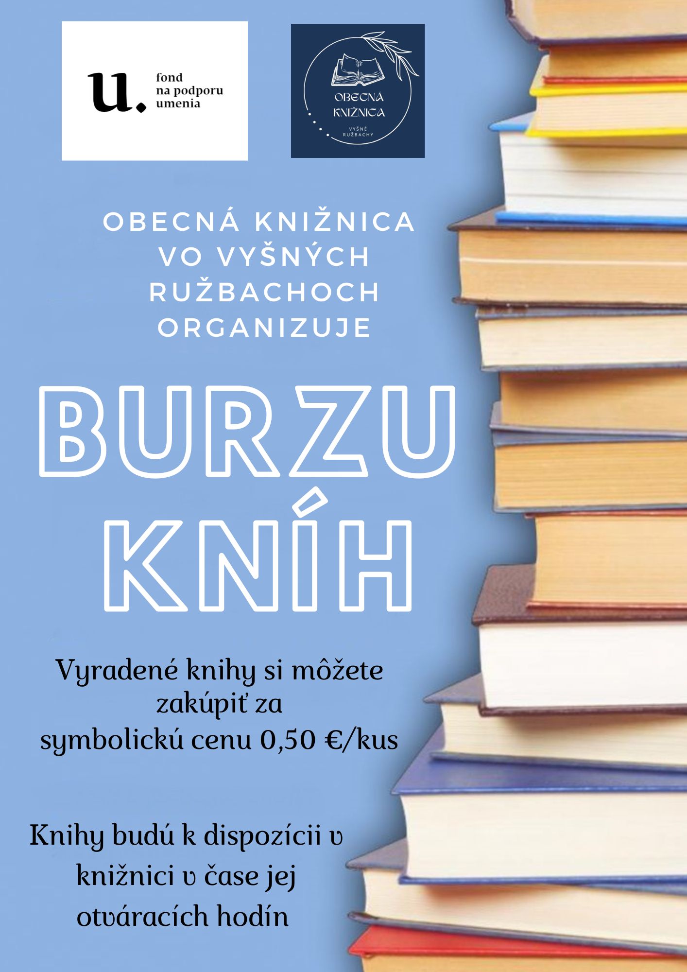 Obecná knižnica organizuje burzu kníh , kde si čitatelia môžu zakúpiť vyradené knihy z knižnice za symbolickú sumu.