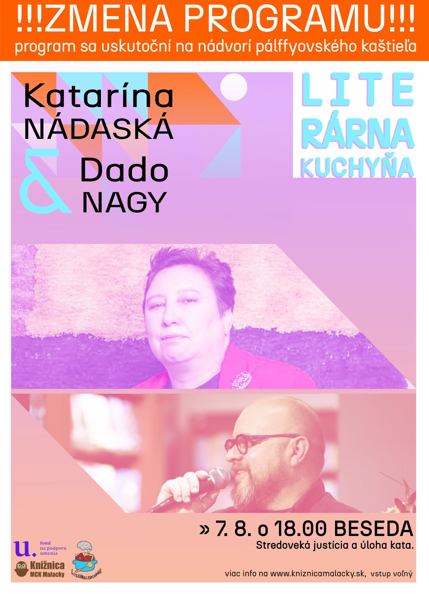 Knižnica MCK Malacky opäť v Literárnej kuchyni namieša ďalšiu literárnu kašu pre milovníkov tradícií a zvykov v slovenskej ľudovej kultúre. Pozvanie do našej Literárnej kuchyne opäť prijala úspešná etnologička a historička Katarína Nádaská, autorka populárno náučných kníh o slovenských ľudových zvykoch a tradíciách a s ňou aj obľúbený moderátor Dado Nagy.Témou besedy bude stredoveká justícia a úloha kata - jeho remeslo.