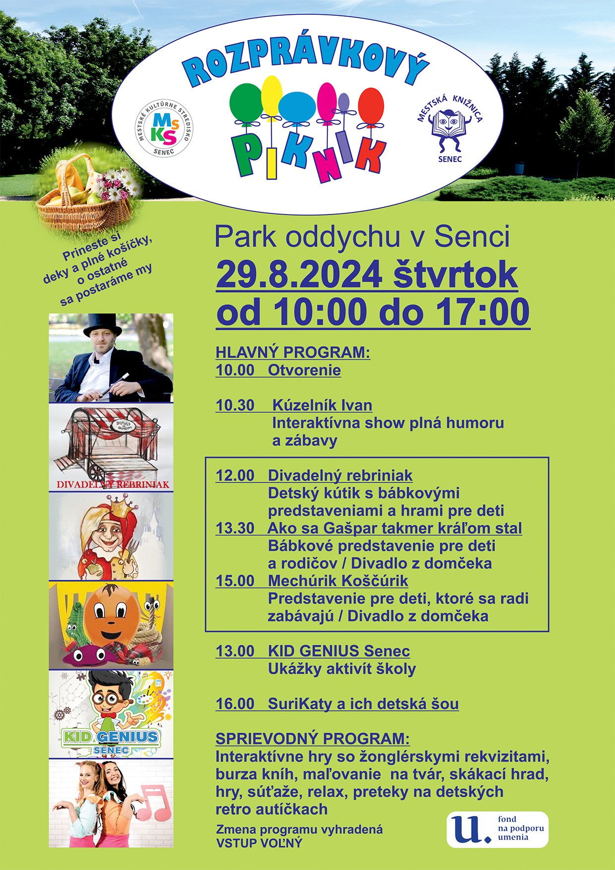 Dňa 29.8.2024 sa otvorili brány Parku oddychu v Senci, kde sa konalo celodenné podujatie Rozprávkovo-literárny piknik. V mesiacoch september až november 2024 sa naši čitatelia mohli stretnúť so slovenskými spisovateľmi. Podujatie " Pasovanie prvákov za čitateľov knižnice" je veľmi zaujímavým podujatím pre deti ZŠ.