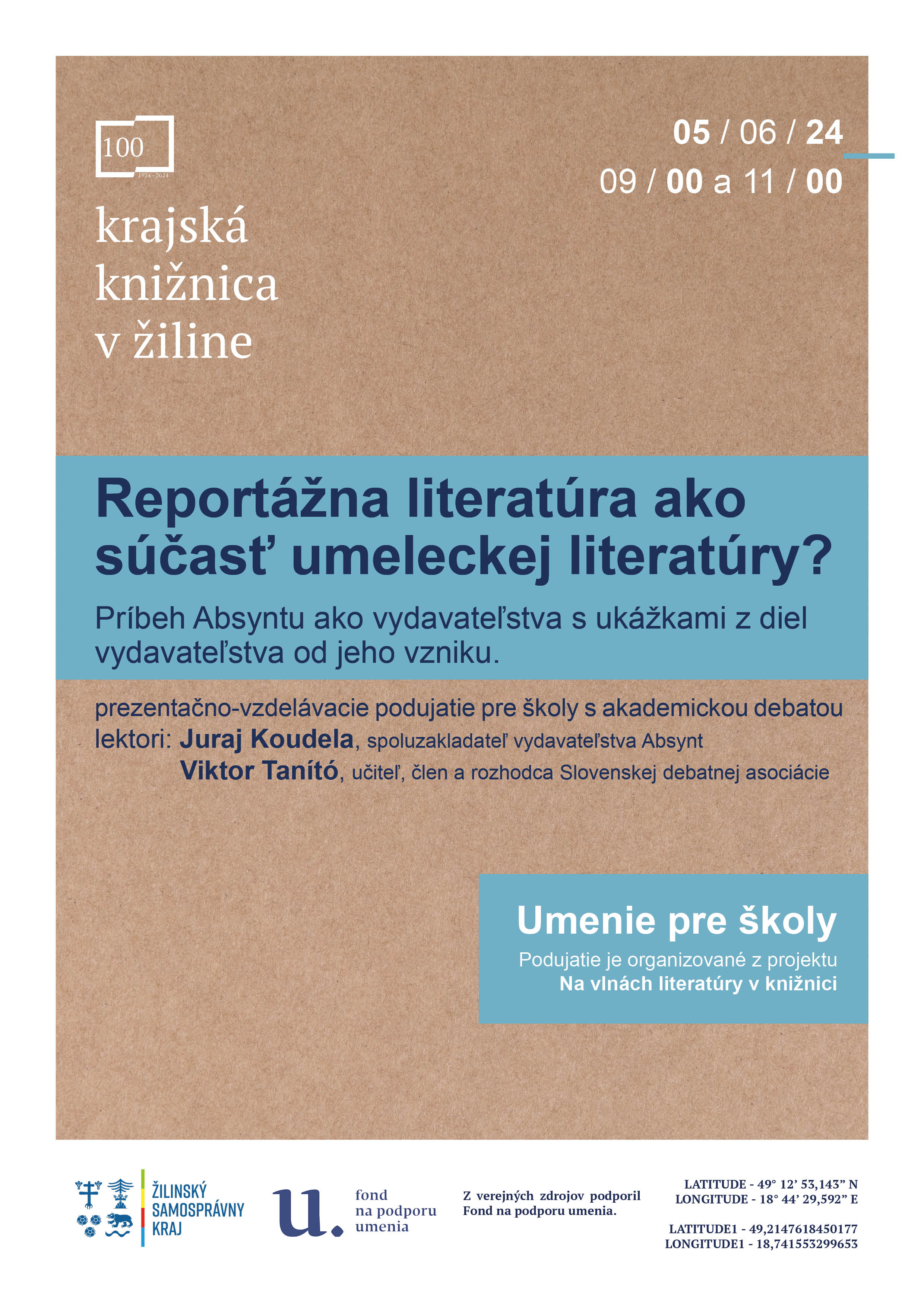 Séria podujatí prezentujúca rôzne druhy súčasného umenia. Zameriava sa predovšetkým na živý kontakt s literatúrou a umením v knižničnom prostredí. Zámerom projektu je podporovať výchovu k umeniu, prezentovať a zvýšiť záujem o kultúrno-umeleckú činnosť v podobe umelecko-edukačných podujatí, divadla, hudby, tanca, komentovaných výstav a v neposlednom rade aktivít prezentujúcich literárne umenie a kultúru.