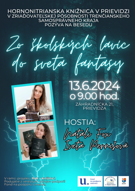 Žánre sci-fi a fantasy sú obľúbené predovšetkým u mladšej generácie. Radi by sme sprostredkovali mladým študentom stretnutie s inšpiratívnymi slovenskými spisovateľkami Ivetou Pernišovou a Natali Fox. Autorky študentov zavedú do tajomného sveta magických bytostí a prezradia, čo ich k tomuto druhu tvorby inšpiruje.