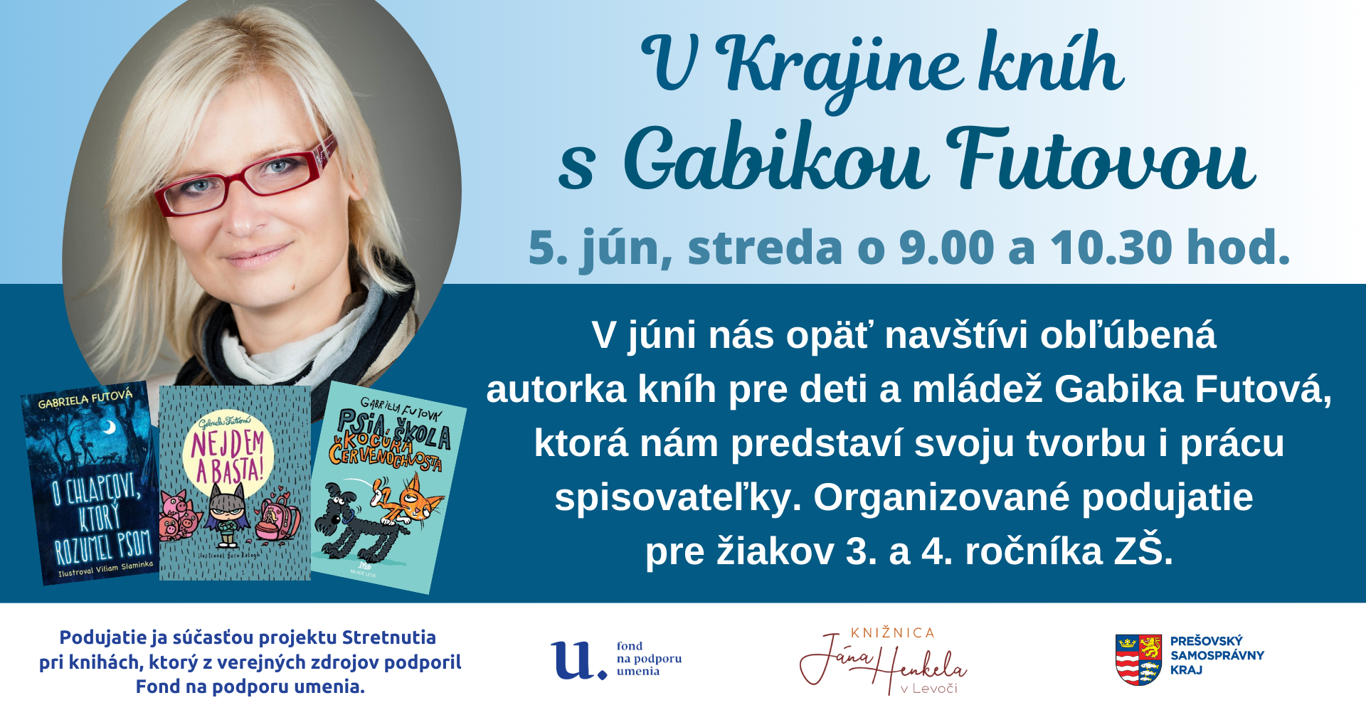 V rámci projektu stretnutia pri knihách si do knižnice pozývame autorov a ilustrátorov kníh pre deti a mládež. V júni sme pre deti pripravili stretnutie s obľúbenou slovenskou spisovateľkou Gabrielou Futovou.