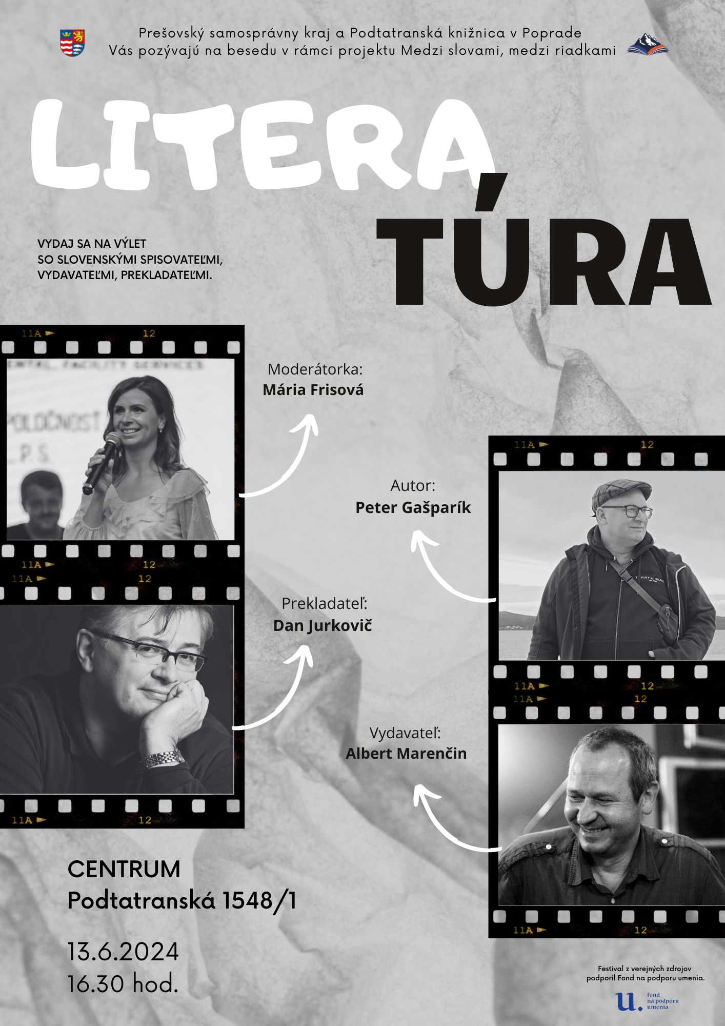 Podtatranská knižnica v Poprade Vás pozýva na besedu s Petrom Gašparíkom (spisovateľom), Danom Jurkovičom (prekladateľom) a Albertom Marenčinom (vydavateľom).