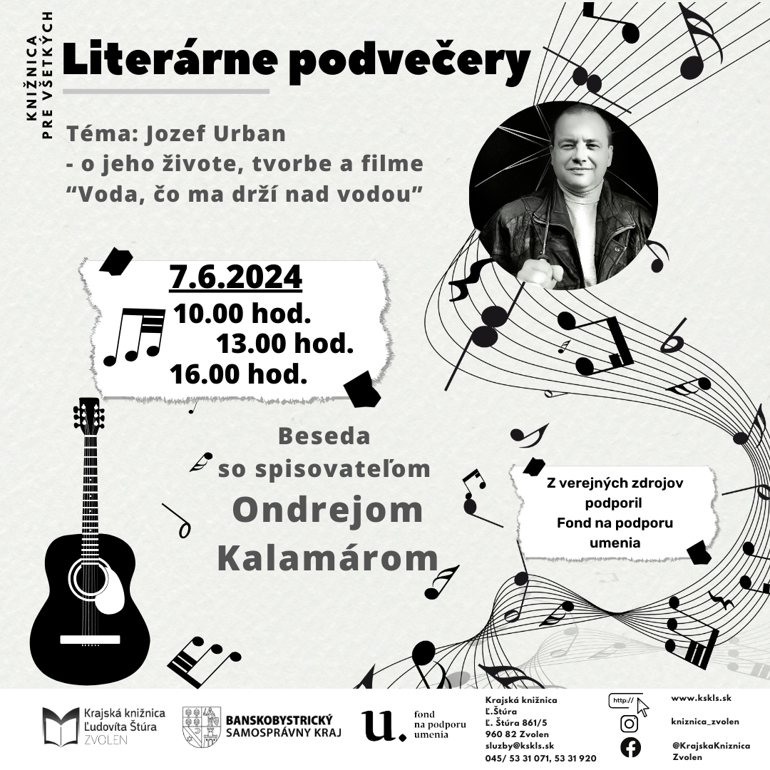 Podujatie pre žiakov základných, stredných škôl a pre širokú verejnosť pri príležitosti 60. výročia narodenia a 30. výročia úmrtia básnika, textára a redaktora Joža Urbana. Jeho život a tvorbu priblíži jeho priateľ, regionálny spisovateľ Ondrej Kalamár.