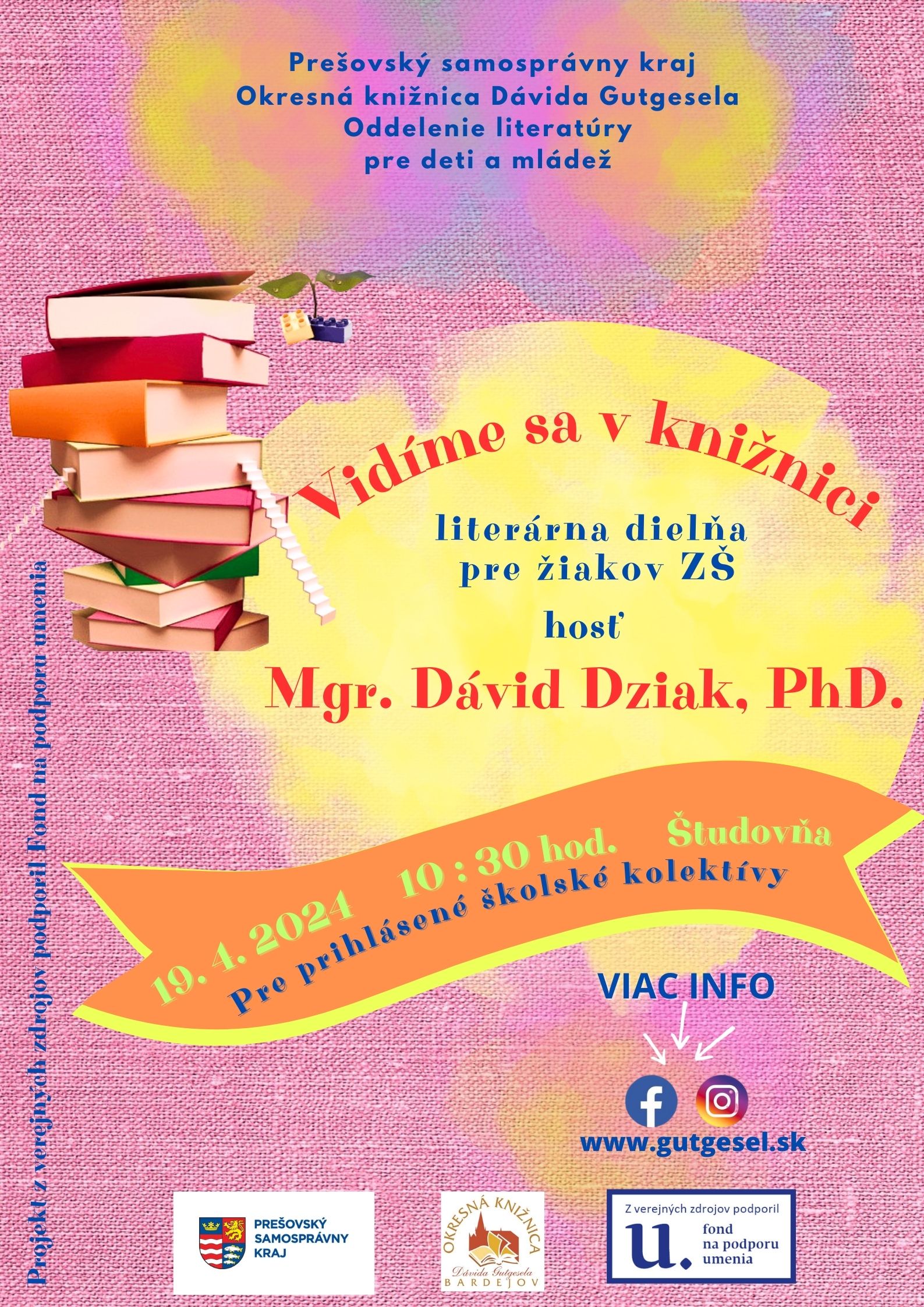 Literárna dielňa pre žiakov základných škôl s názvom Poď do rozprávky s hosťom Mgr. Dávidom Dziakom, PhD.