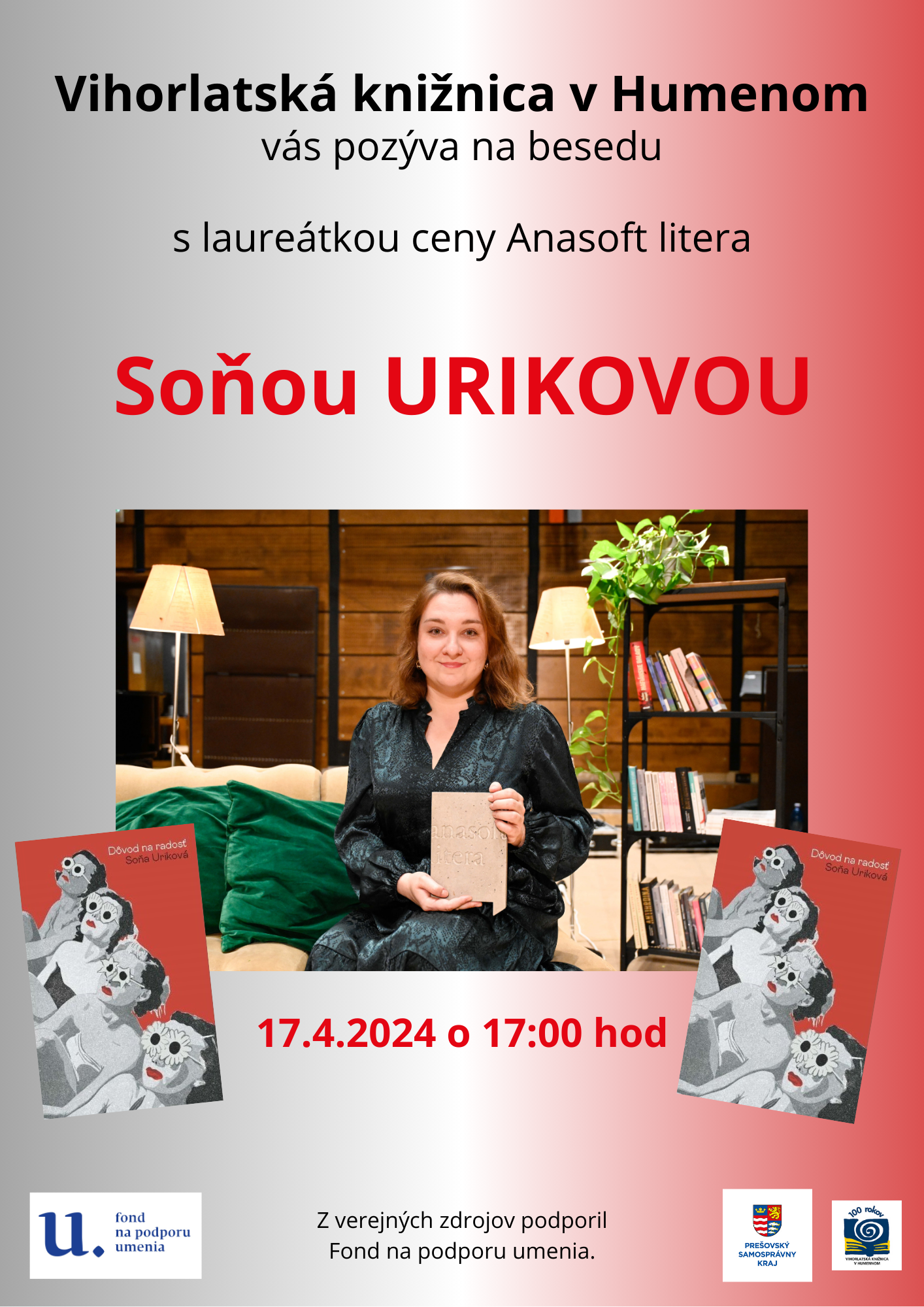 Beseda s laureátkou ceny Anasoft litera, Soňou Urikovou