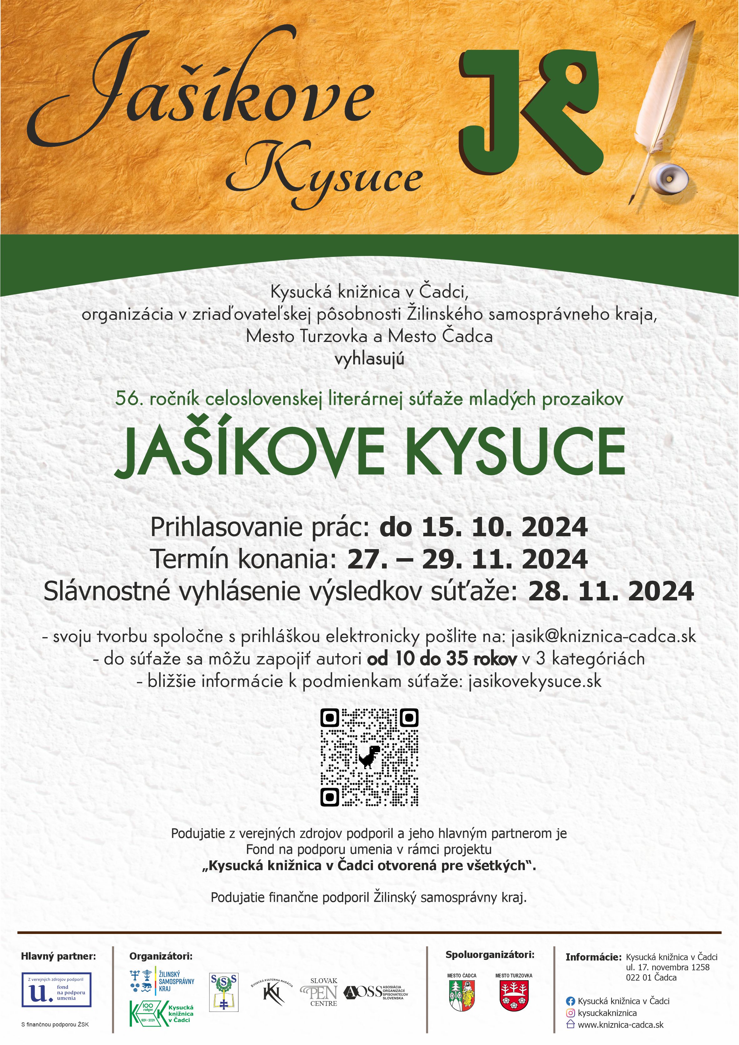 Kysucká knižnica v Čadci, organizácia v zriaďovateľskej pôsobnosti Žilinského samosprávneho kraja, v spolupráci s partnermi vyhlasujú už 56. ročník celoslovenskej literárnej súťaže mladých prozaikov.