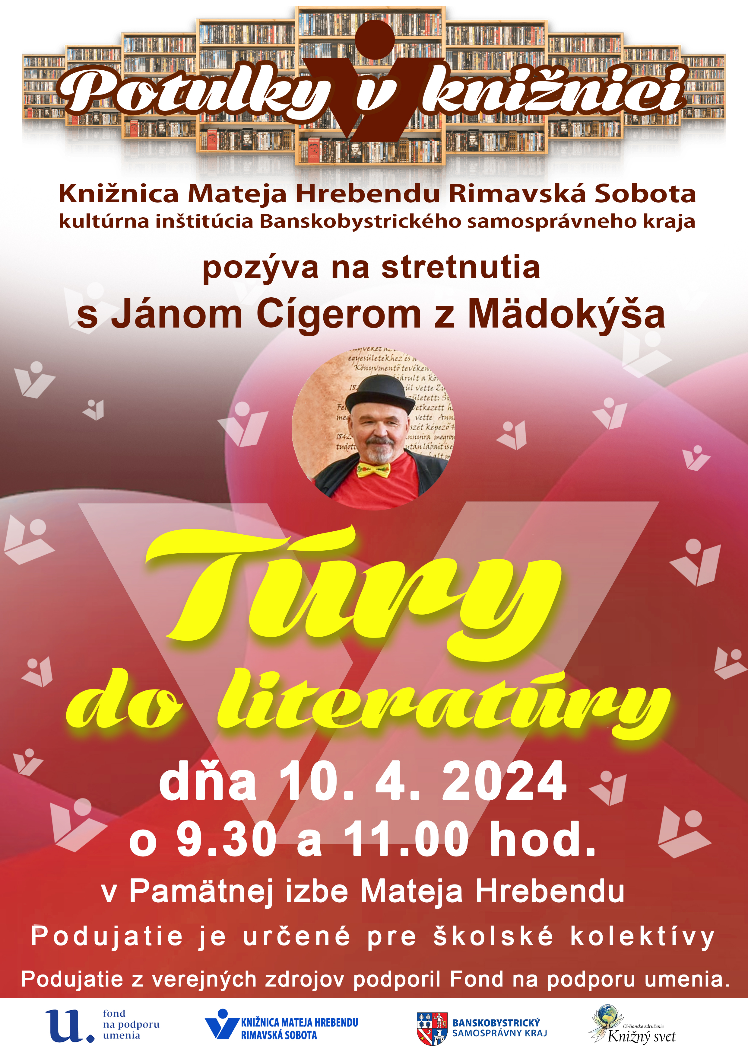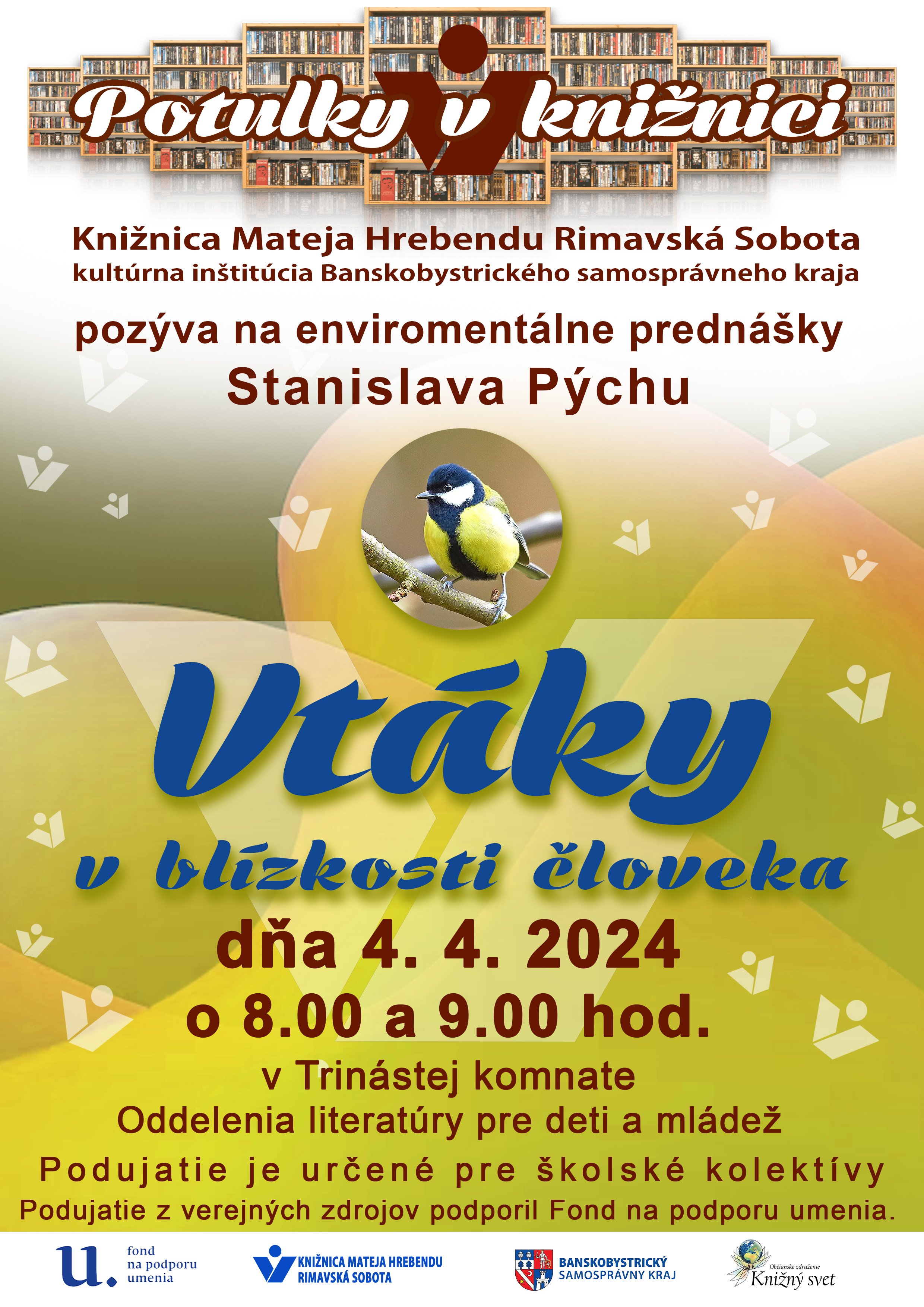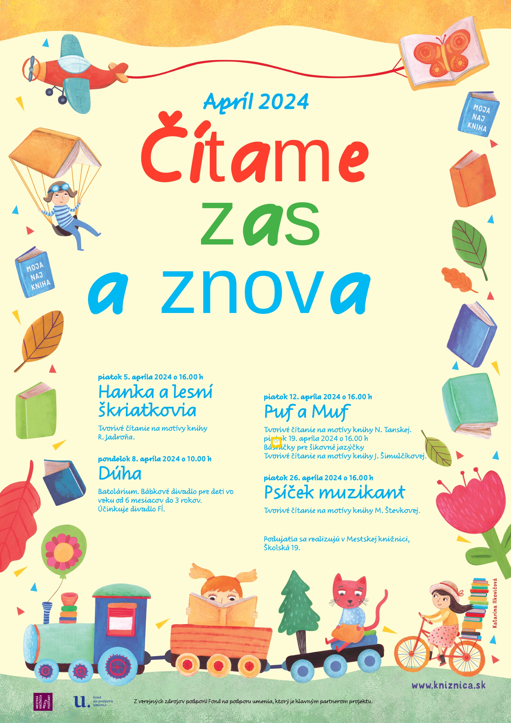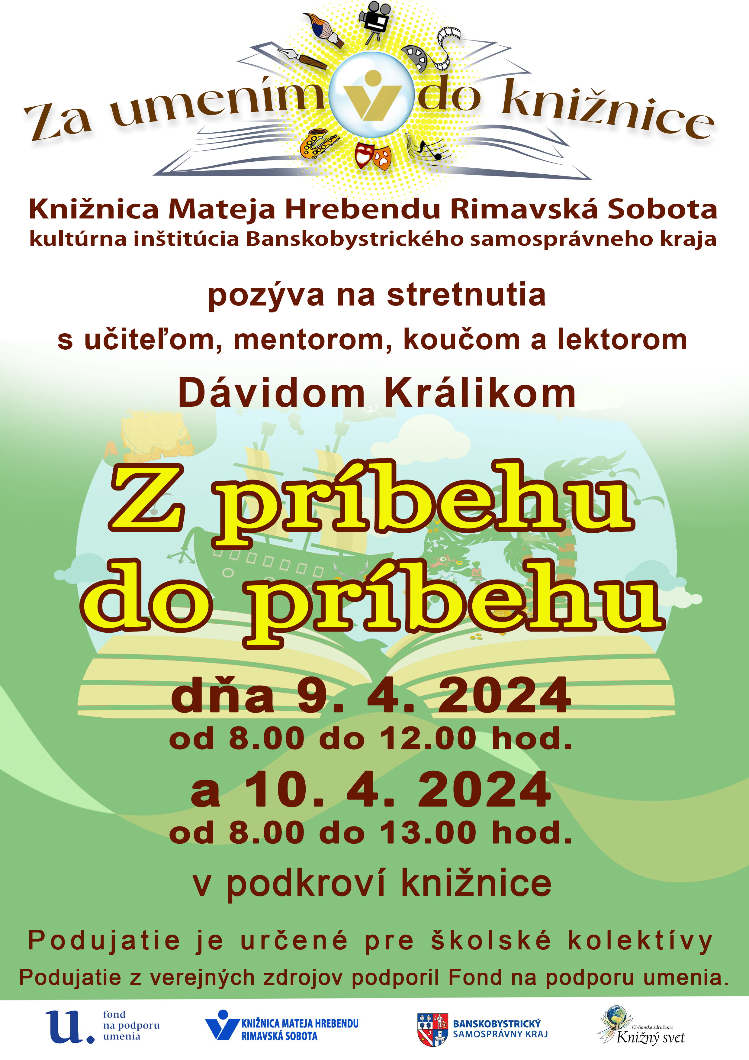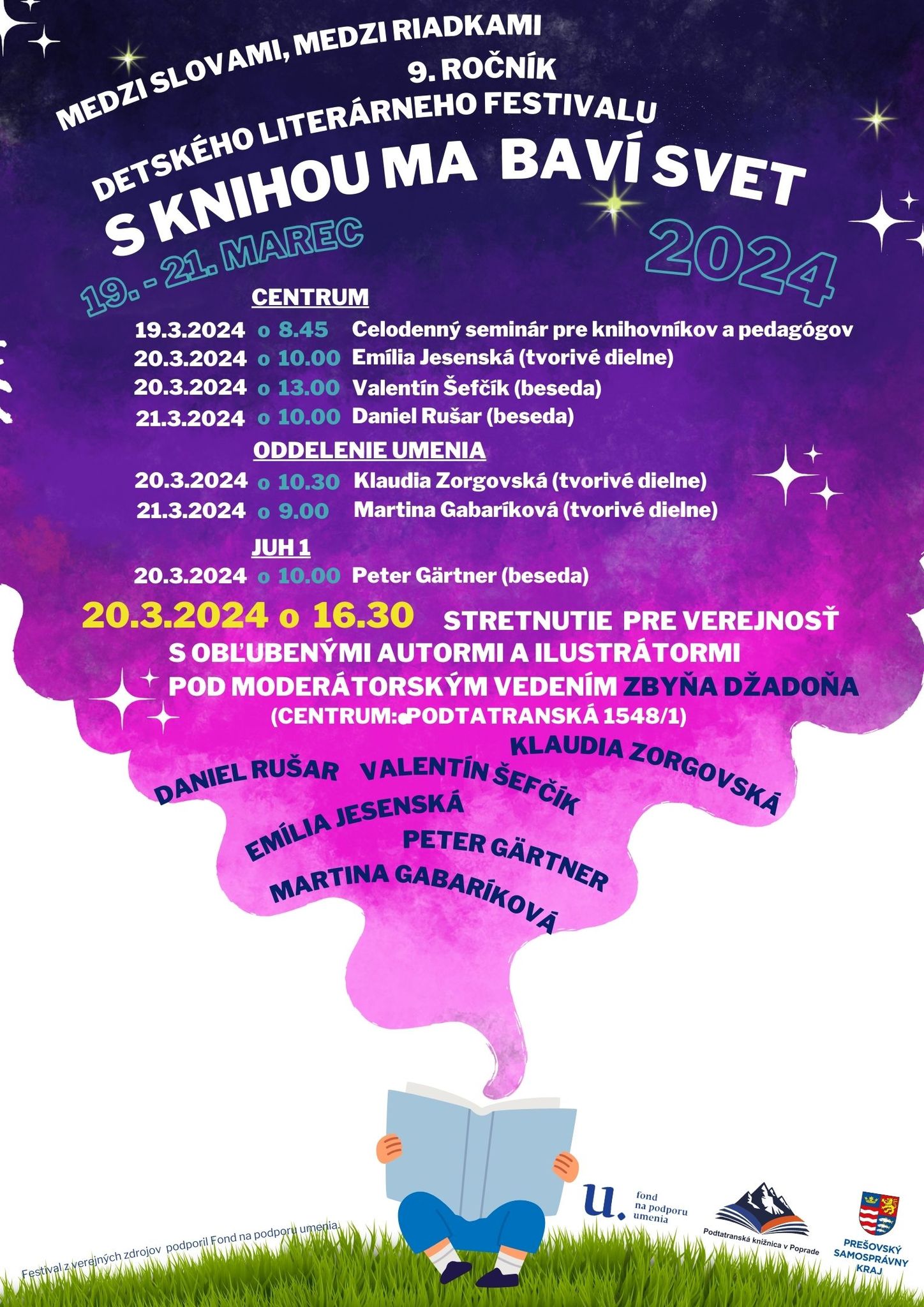 Srdečne Vás pozývame na 9. ročník Festivalu detskej literatúry S knihou ma baví svet. Uskutoční sa v Centre Podtatranskej knižnice v Poprade (Podtatranská 1548/1) 20.marca 2024 o 16.30. Tešiť sa môžete na stretnutie s mnohými zaujímavými spisovateľmi, ako aj ilustrátormi detských kníh.