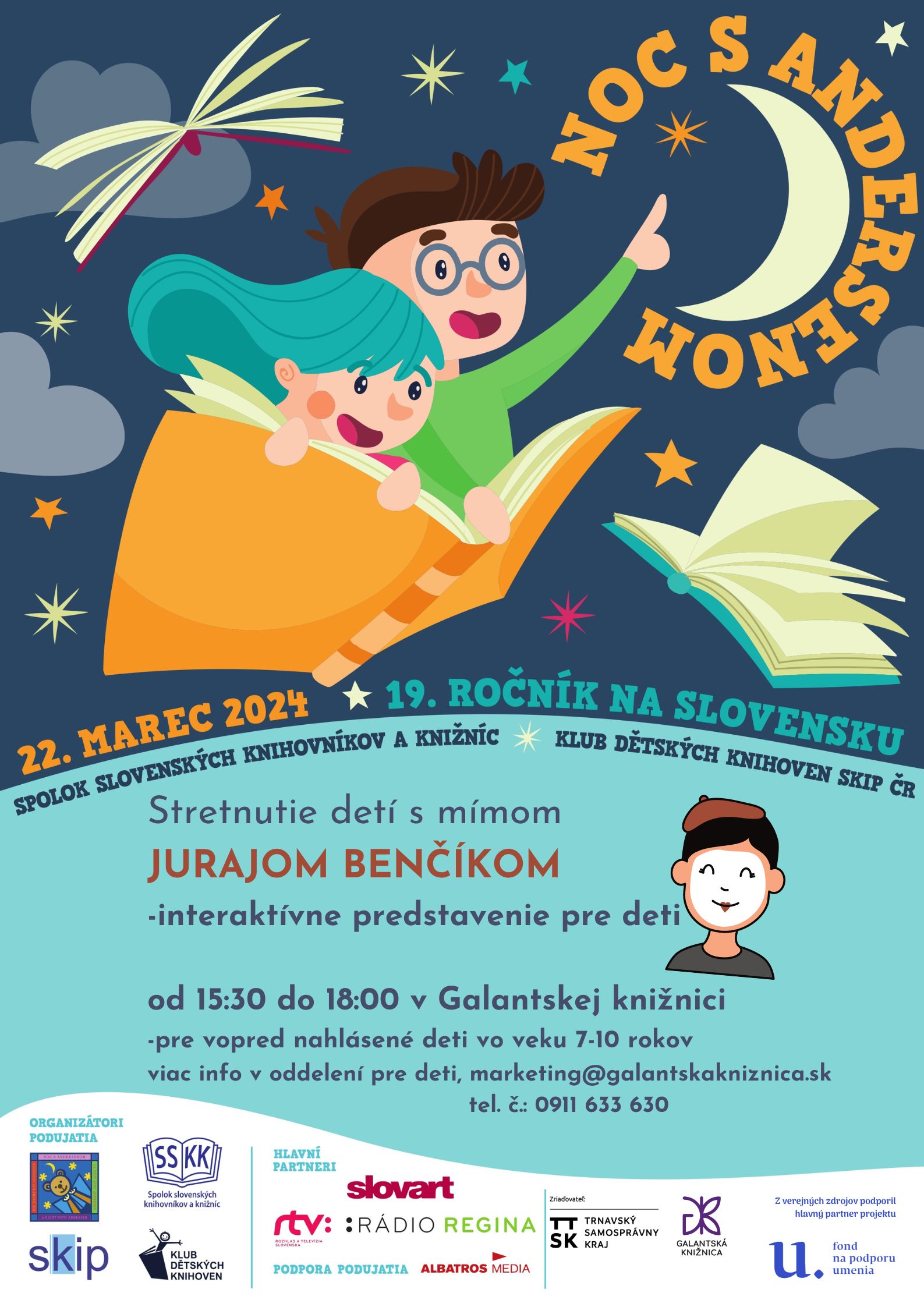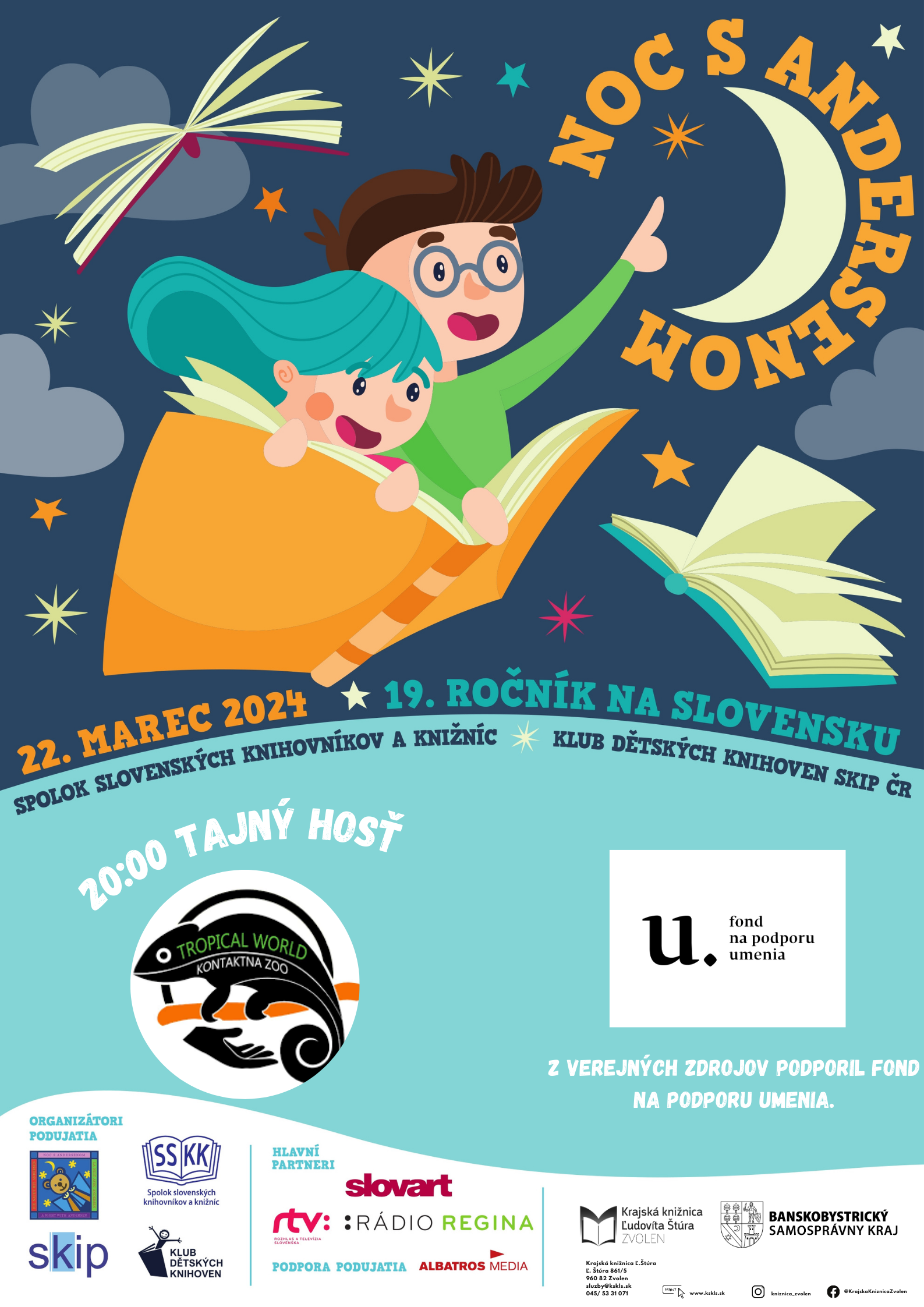 Tradičné a obľúbené podujatie medzinárodného významu zamerané na podporu detského čítania. Tohtoročné podujatie sa realizuje aj s prenocovaním detí v priestoroch knižnice do soboty. V rámci programu sa deti môžu tešiť na hľadanie pokladu, prehliadku mesta, rôzne hry, množstvo netradičných tvorivých dielní. Prekvapením večera bude tajný hosť, ktorého účasť z verejných zdrojov podporil Fond na podporu umenia. Tajným hosťom bude kontaktná zoo zameraná na plazy, obojživelníky, ryby a hmyz.