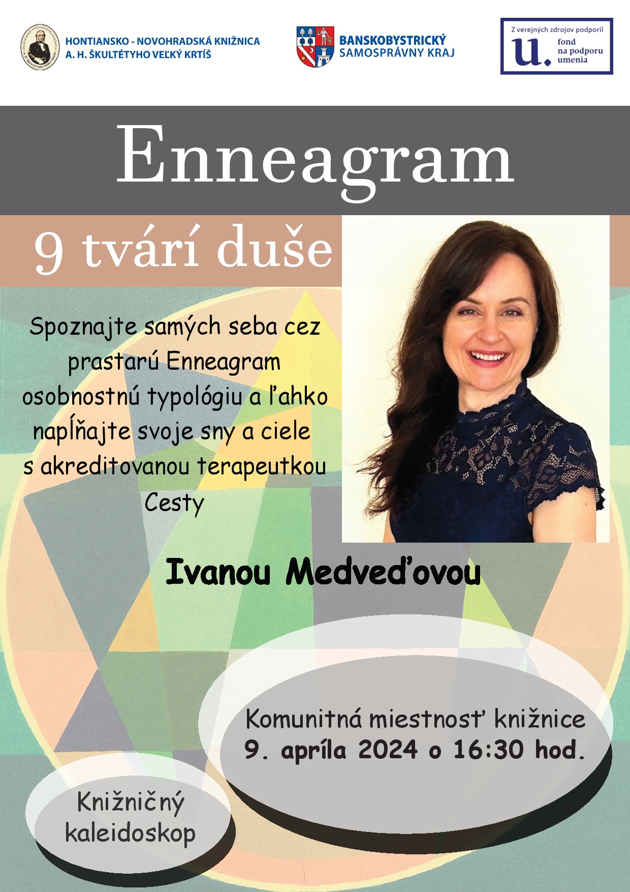 Akreditovaná terapeutka Ivana Medveďová na podujatí s pod názvom 9 tvárí duše priblíži čitateľom i širokej verejnosti možnosti ako spoznať samých seba cez prastarú osobnostnú typológiu Enneagram.