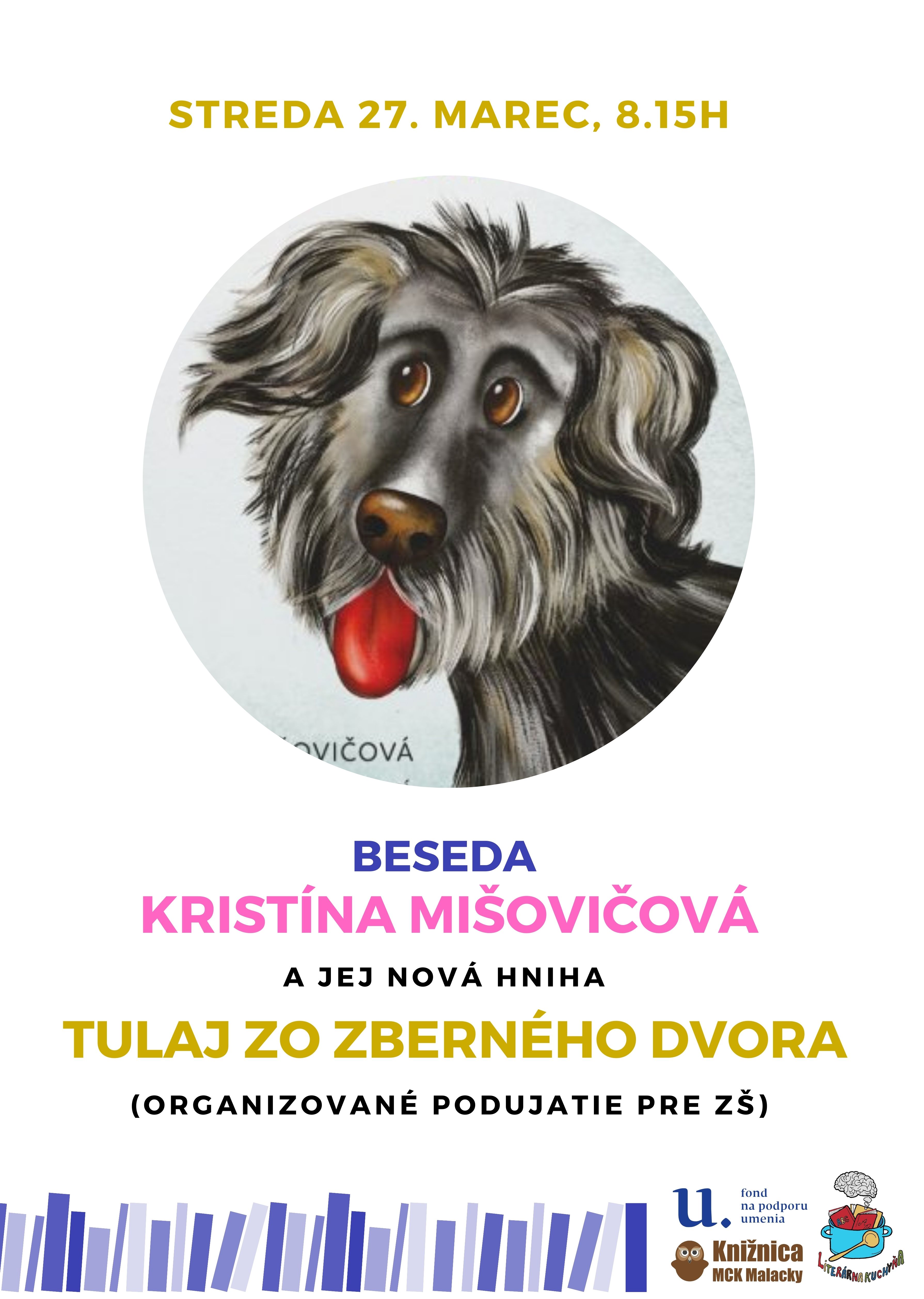 Knižnica MCK Malacky v Literárnej kuchyni namieša prvú jarnú výchovno-vzdelávaciu kašu, ktorá podporuje čitateľskú gramotnosť, čiže trávenie kníh u detí a mládeže a ich záujem o literatúru. Do našej kuchyne k nám zavíta spisovateľka Kristína Mišovičová so svojou knižnou novinkou pre deti Tulaj zo zberného dvora.