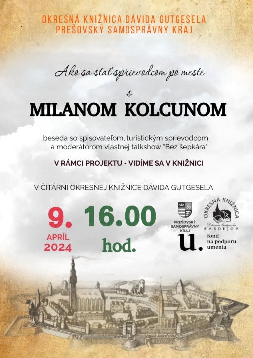 V rámci projektu Vidíme sa v knižnici, ktorý zahŕňa Literárnu čitáreň sa predstaví Milan Kolcun, kde nás prevedie " Ako sa stať sprievodcom po meste".