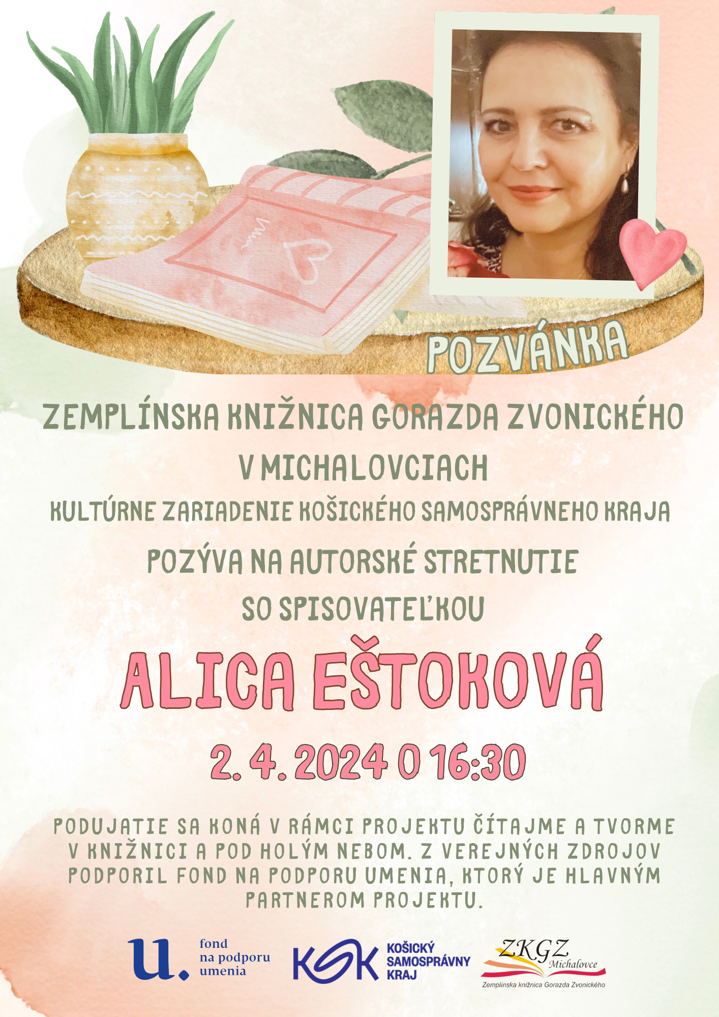 Spisovateľka Alica Eštoková ponúkne pohľad do svojej tvorby a porozpráva o svojich literárnych snoch, úvahách a zážitkoch.