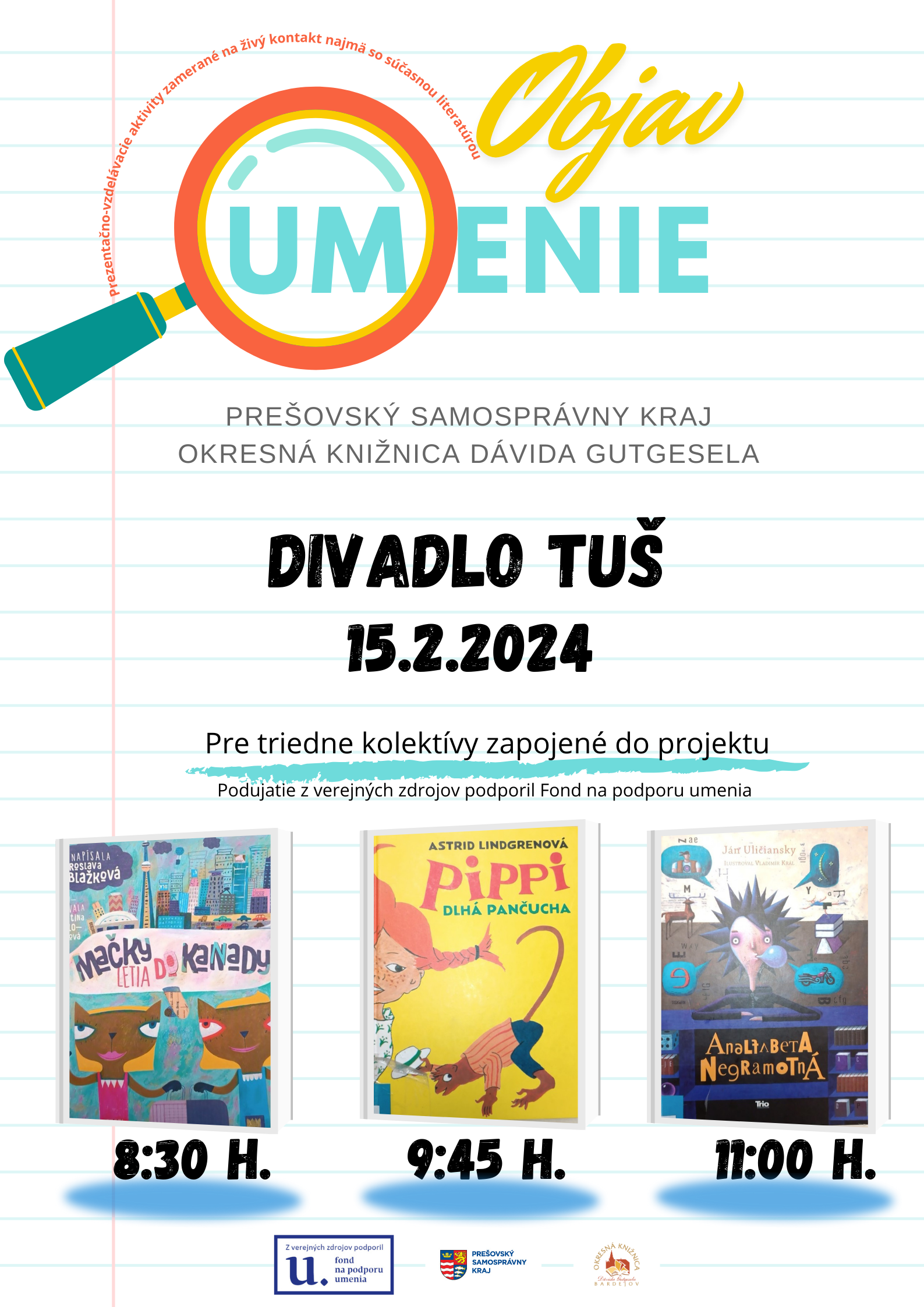 Interaktívne bábkové inscenácie podľa knižných predlôh diel slovenských aj zahraničných autorov preberaných na hodinách slovenského jazyka a literatúry v rámci čítania a literárnej výchovy na 1. stupni ZŠ. Po predstaveniach nasledujú vzdelávacie workshopy zamerané na vysvetlenie pojmov, obsahovú stránku a prácu s knihou. Prezentačno-vzdelávacie aktivity/hodiny zamerané na živý kontakt najmä so súčasnou literatúrou povedú herci Divadla TUŠ.