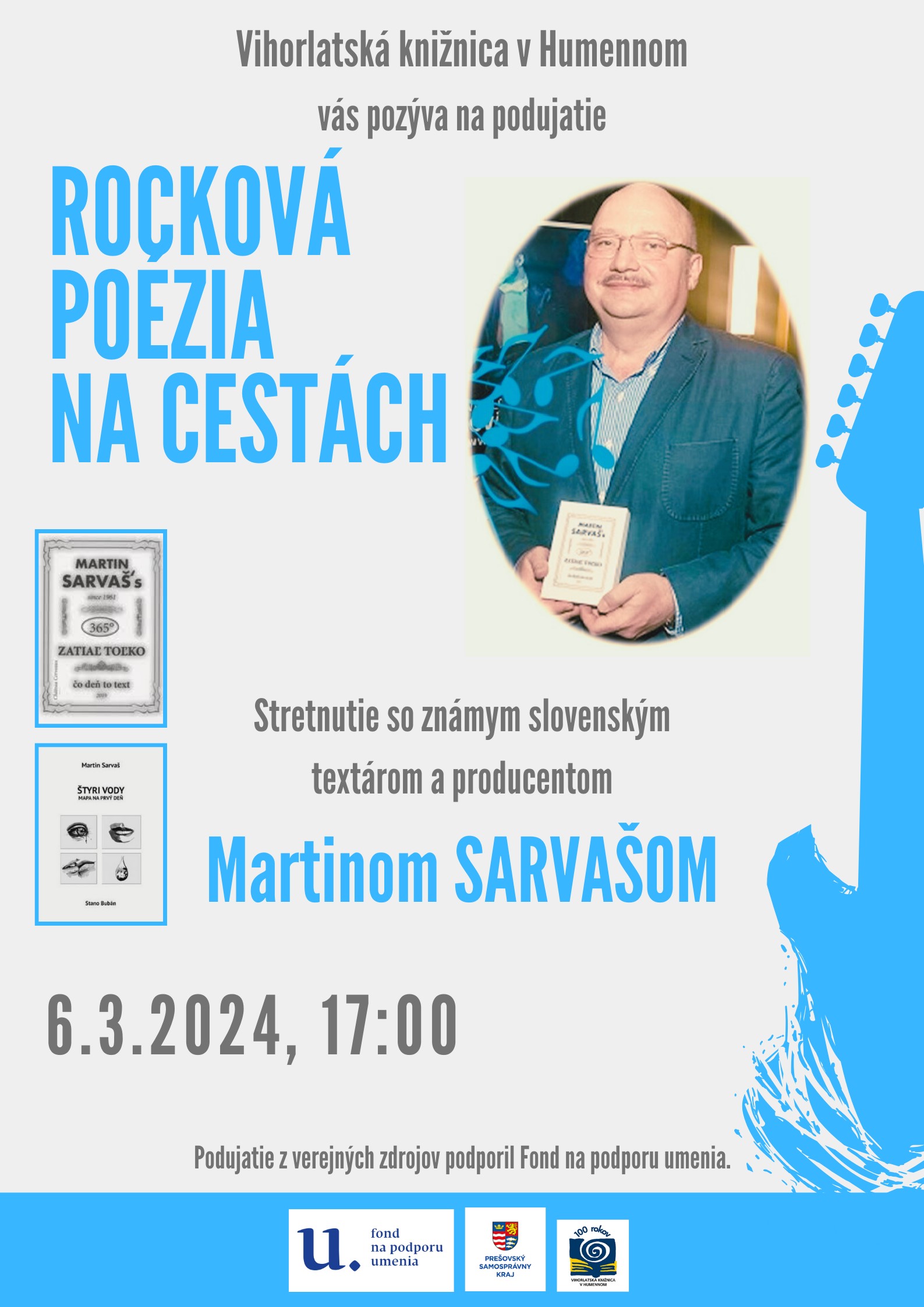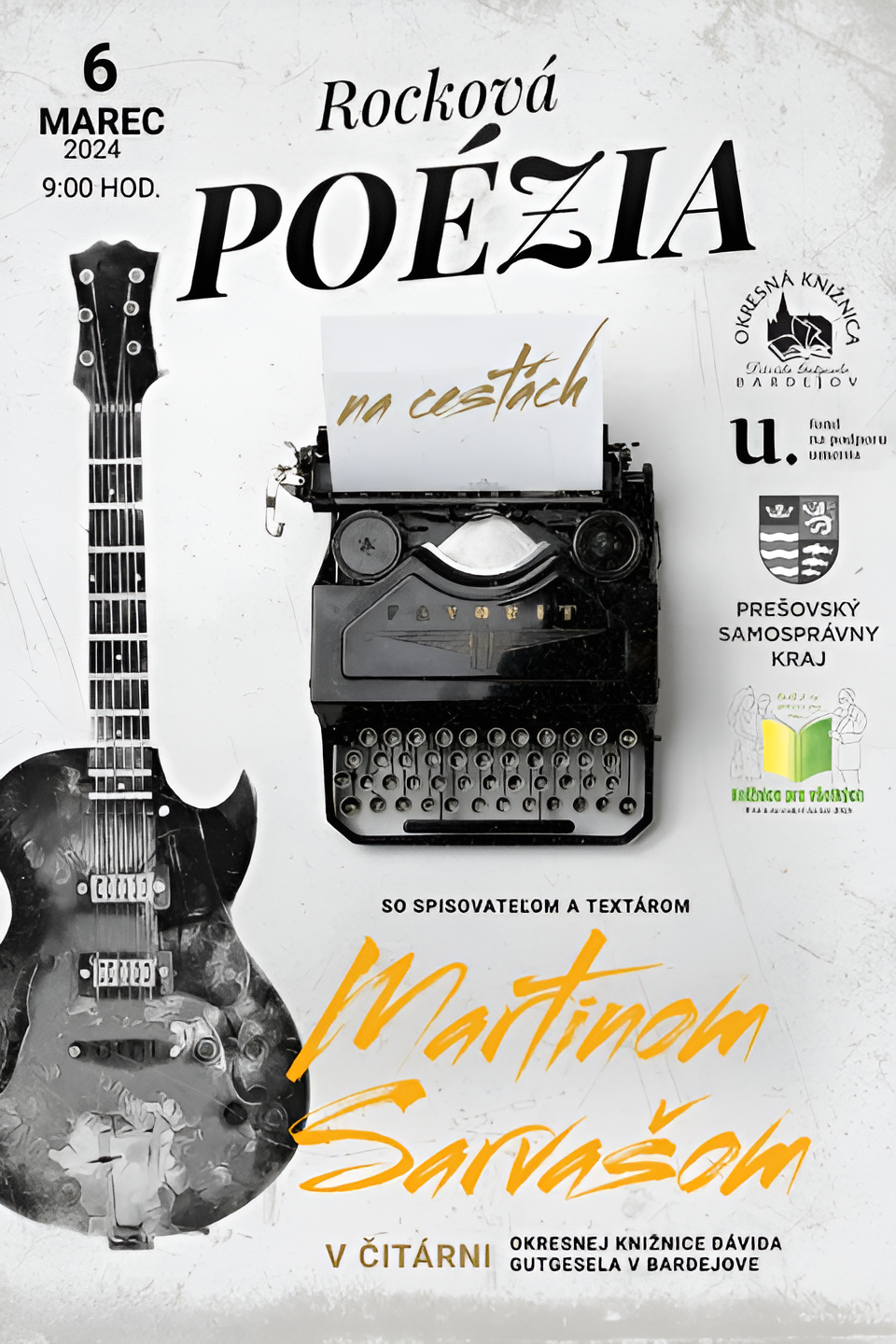 V rámci projektu Vidíme sa v knižnici, ktorý zahŕňa Literárnu čitáreň sa nám predstaví Martin Sarvaš so svojou rockovou poéziou, ktorý je považovaný za najvýznamnejšieho slovenského textára rockovej hudobnej scény.