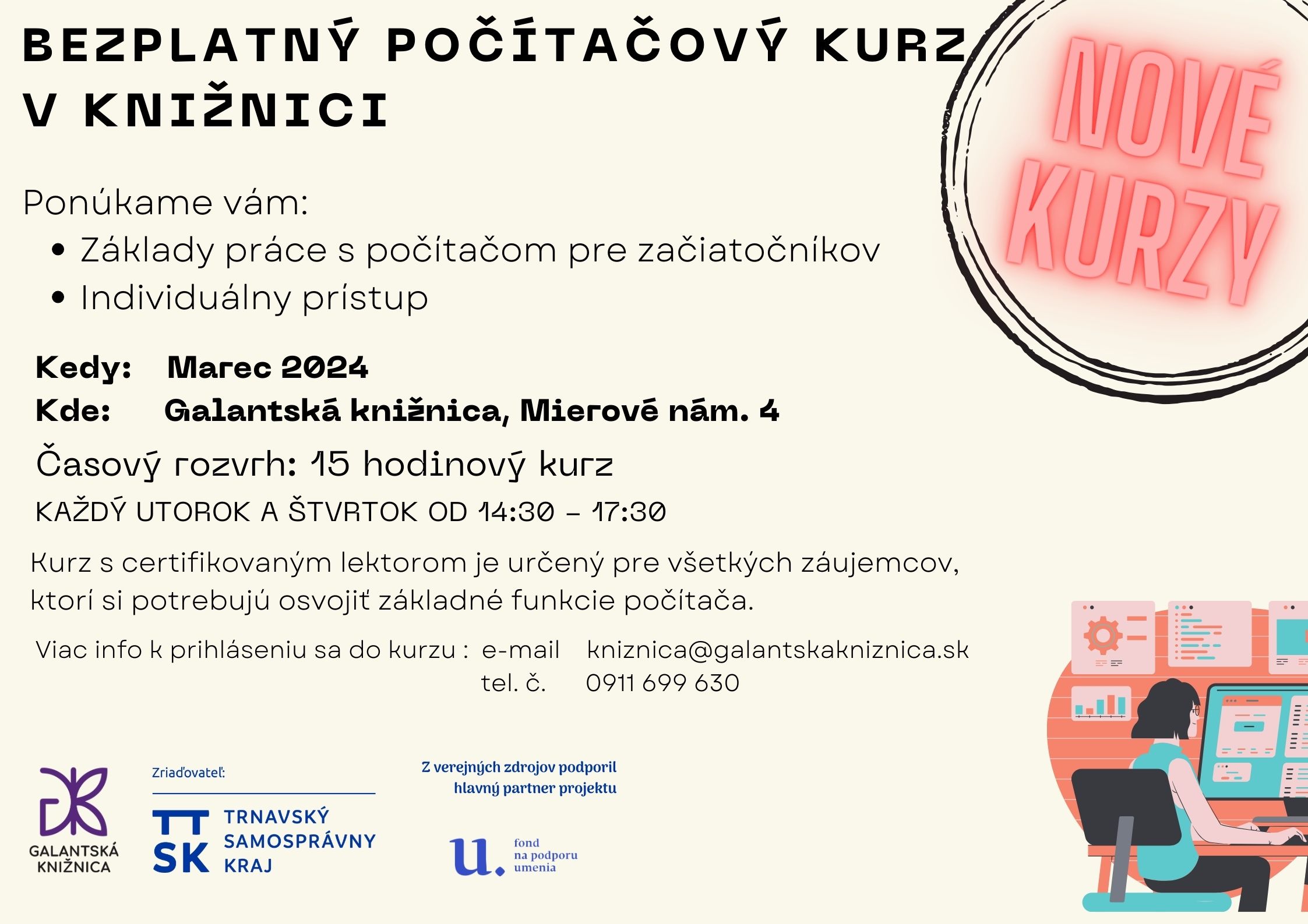 Kurz s certifikovaným lektorom je určený pre všetkých záujemcov, ktorí si potrebujú osvojiť základné funkcie počítača.