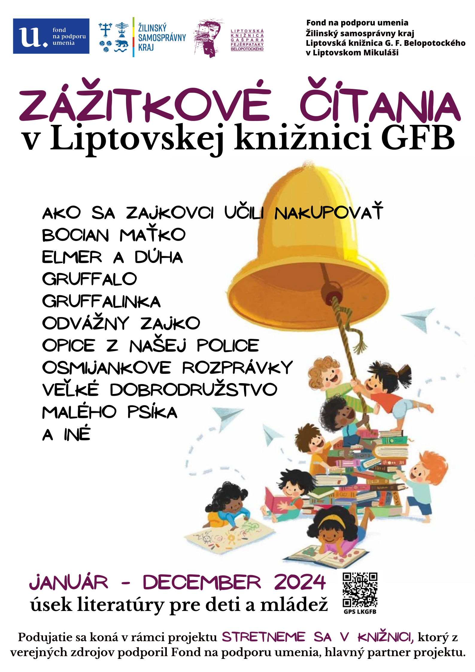 Zážitkové čítania v Liptovskej knižnici G. F. Belopotockého v Liptovskom Mikuláši, počas celého roka 2024, k obľúbeným detským knihám.