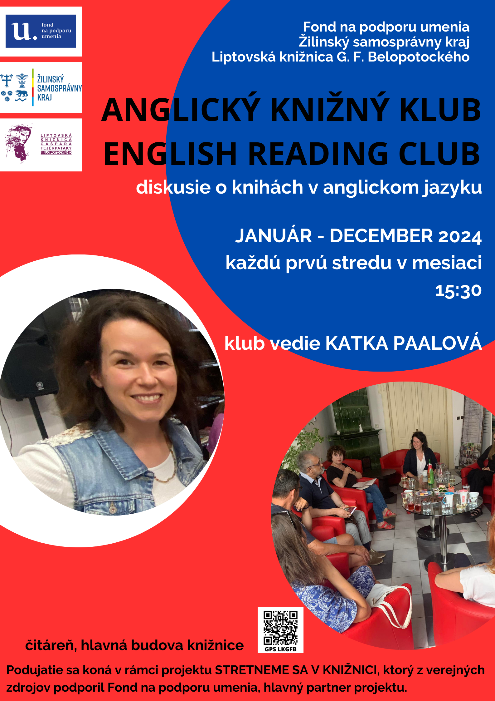 Anglický knižný klub – English reading club – 12 diskusií o knihách v anglickom jazyku s Katarínou Paalovou; 1x do mesiaca, prvú stredu v mesiaci o 15.30 hod. v čitárni Liptovskej knižnice GFB
