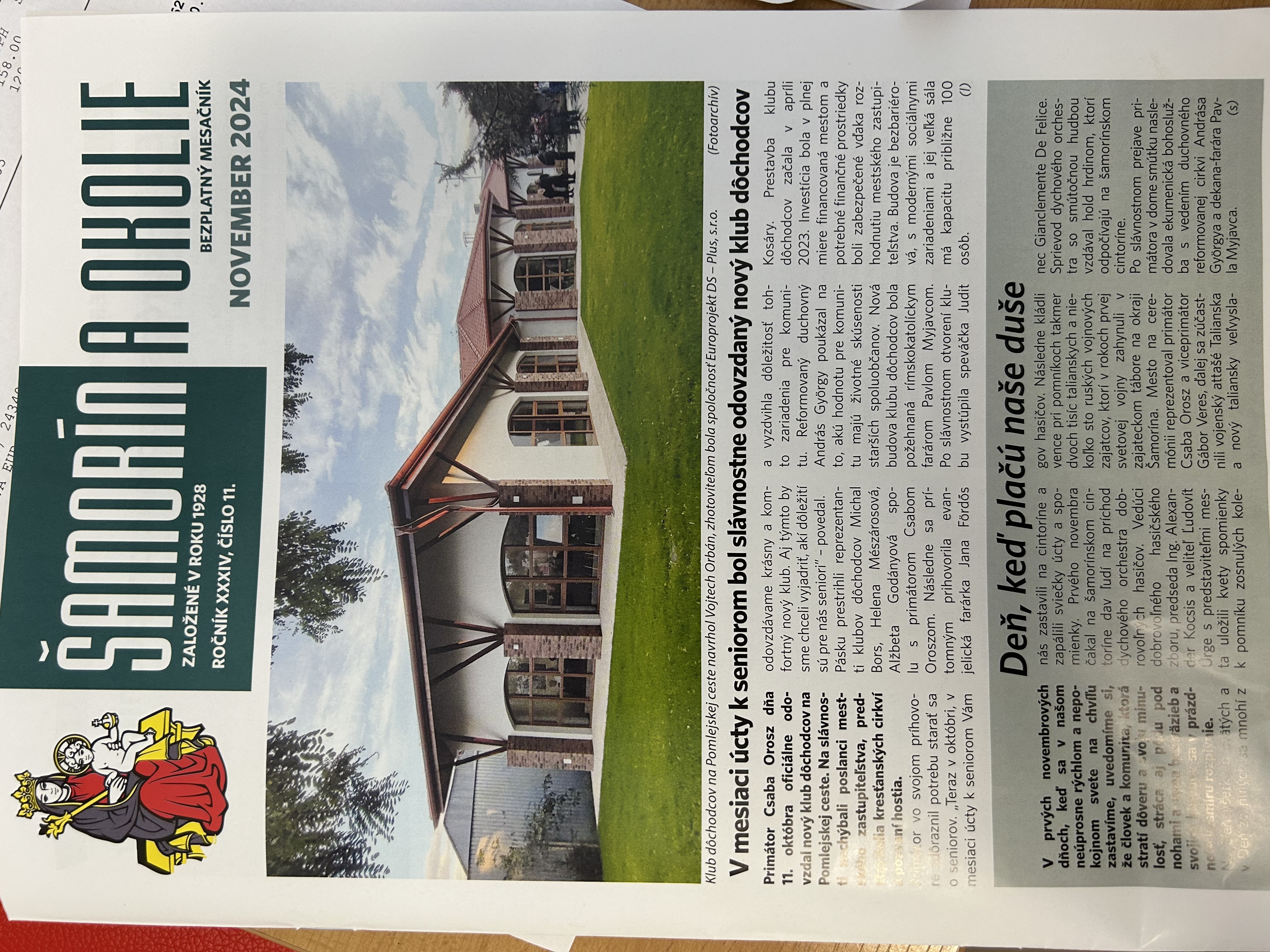 Článok uverejnený o projekte v regionálnom časopise: Šamorín a okolie - november 2024.