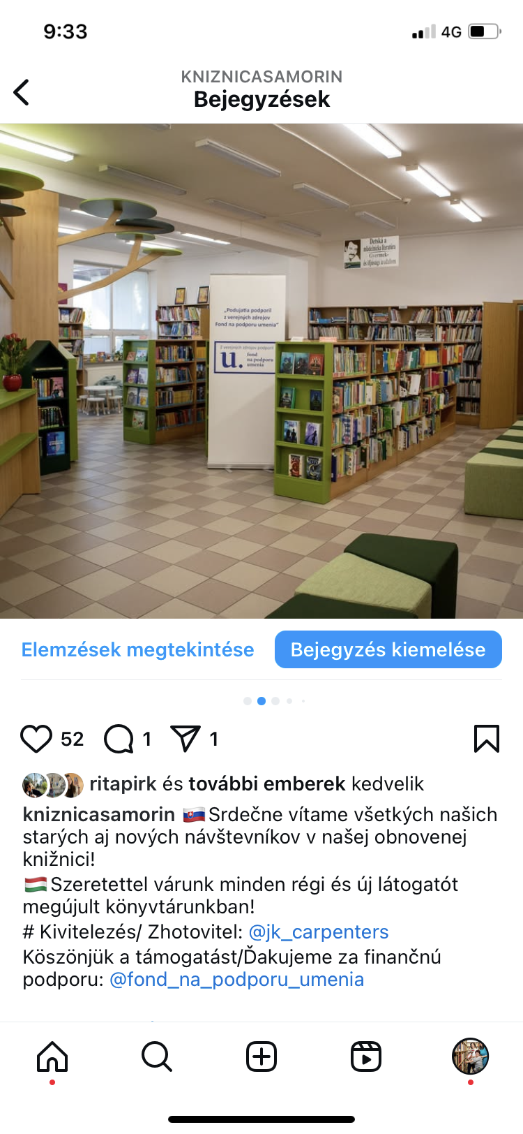 Príspevky uverejnené na sociálnych stránkach knižnice - facebook, instagram