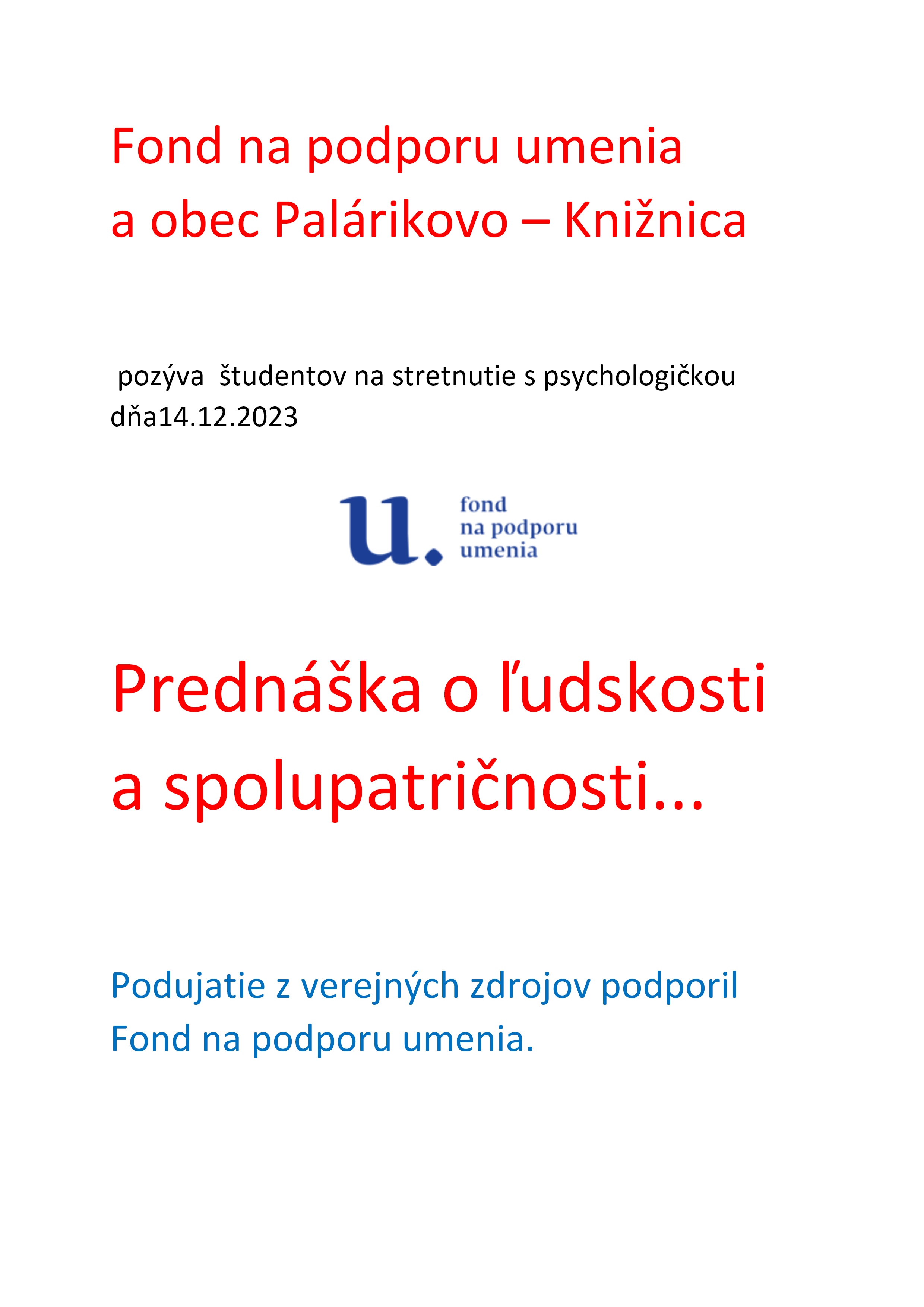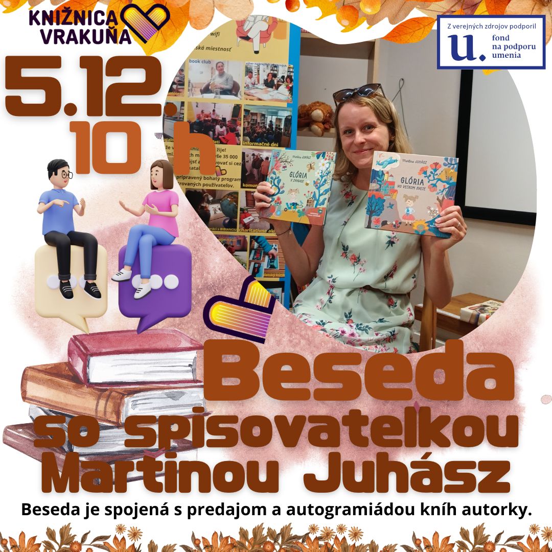 Besedu so spisovateľkou Martinou Juhász z verejných zdrojov podporil Fond na podporu umenia. Beseda je určená pre deti škôlkarského veku, v sprievode rodičov a triedne kolektívy MŠ.