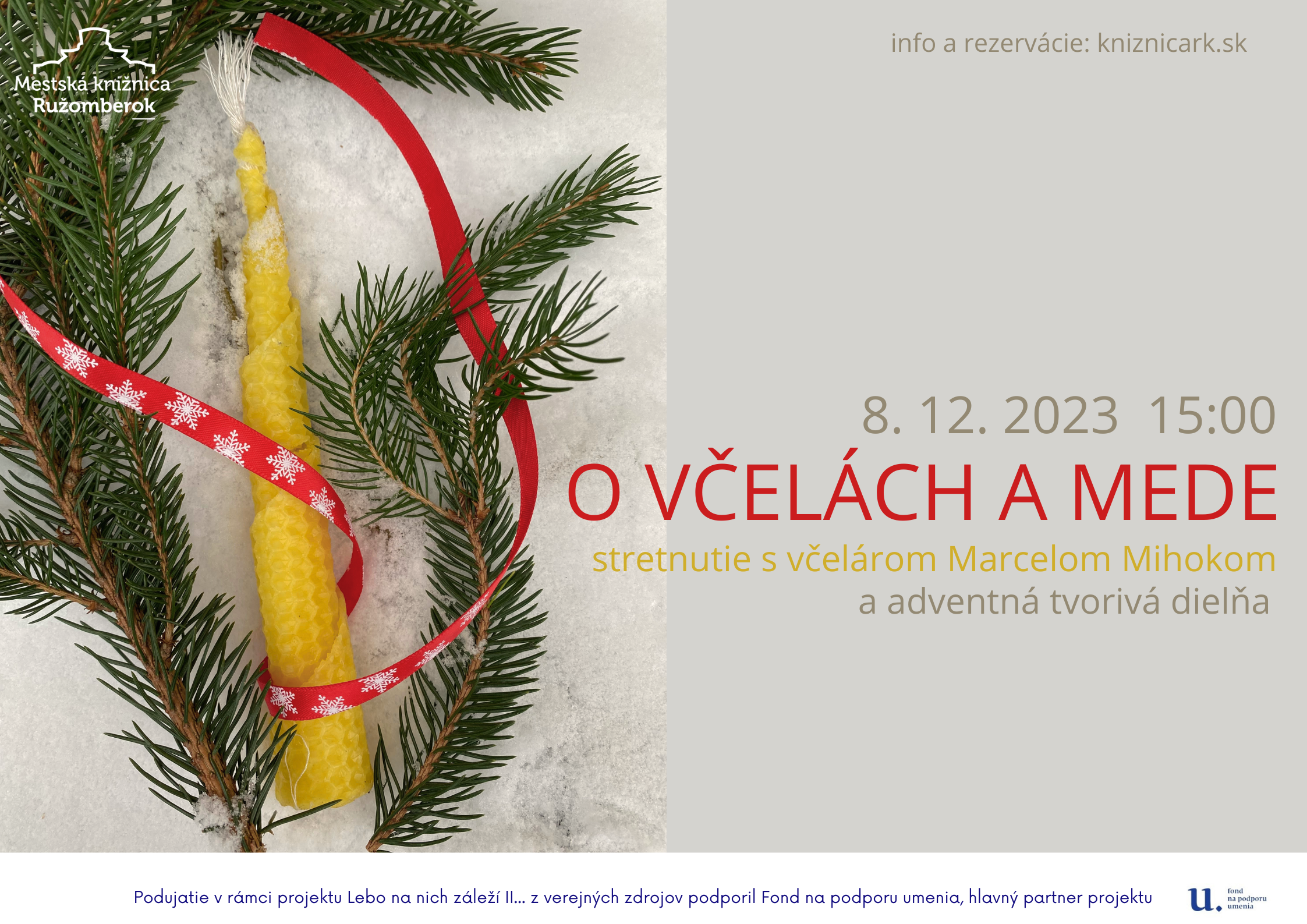 Stretnutie s včelárom Marcelom Mihokom z občianskeho združenia Slnkotvor, spojené s včelárskou adventnou tvorivou dielňou.