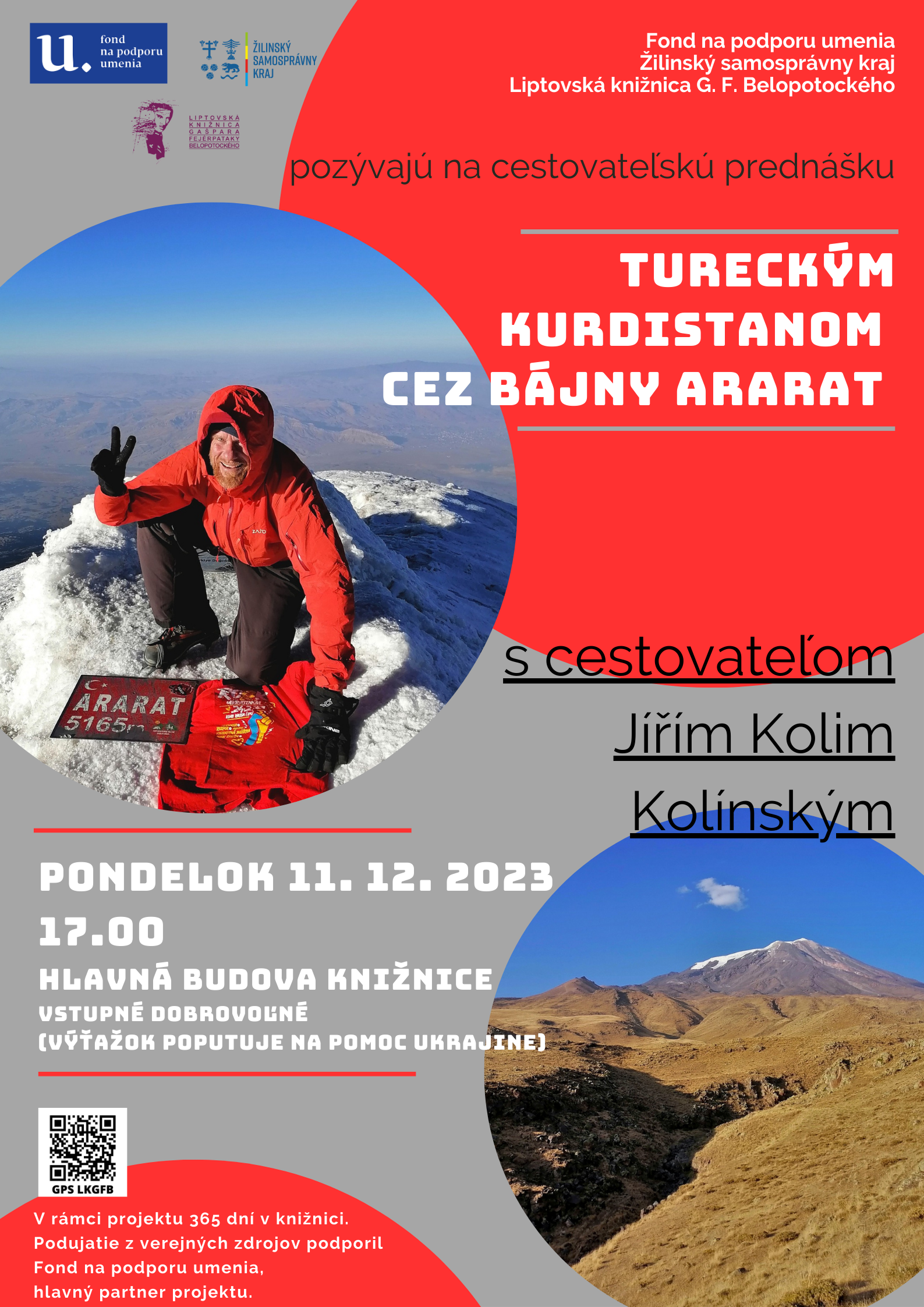 Tureckým Kurdistanom cez bájny Ararat – cestovateľská prednáška s Jířím Kolim Kolínským, 11. december 2023 od 17.00 hod. v multimediálnom úseku liptovskej knižnice.