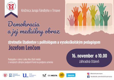 V rámci cyklu Ako čítať médiá sme pripravili prednášku určenú pre študentov stredných škôl. Ako lektora sme pozvali politológa, PhDr. Jozefa Lenča, PhD., mim. doc., ktorý pôsobí na Filozofickej fakulte Univerzity sv. Cyrila a Metoda v Trnave, odborníka na Blízky východ. Poznáme ho z médií ako komentátora politickej situácie.