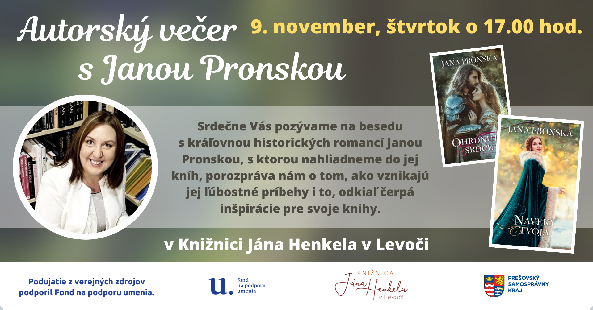 V rámci projektu Autorský večer s... pripravujeme pre čitateľov stretnutia s autormi súčasnej slovenskej literatúry. V novembri prijala pozvanie do našej knižnice kráľovná historických romancí Jana Pronská.