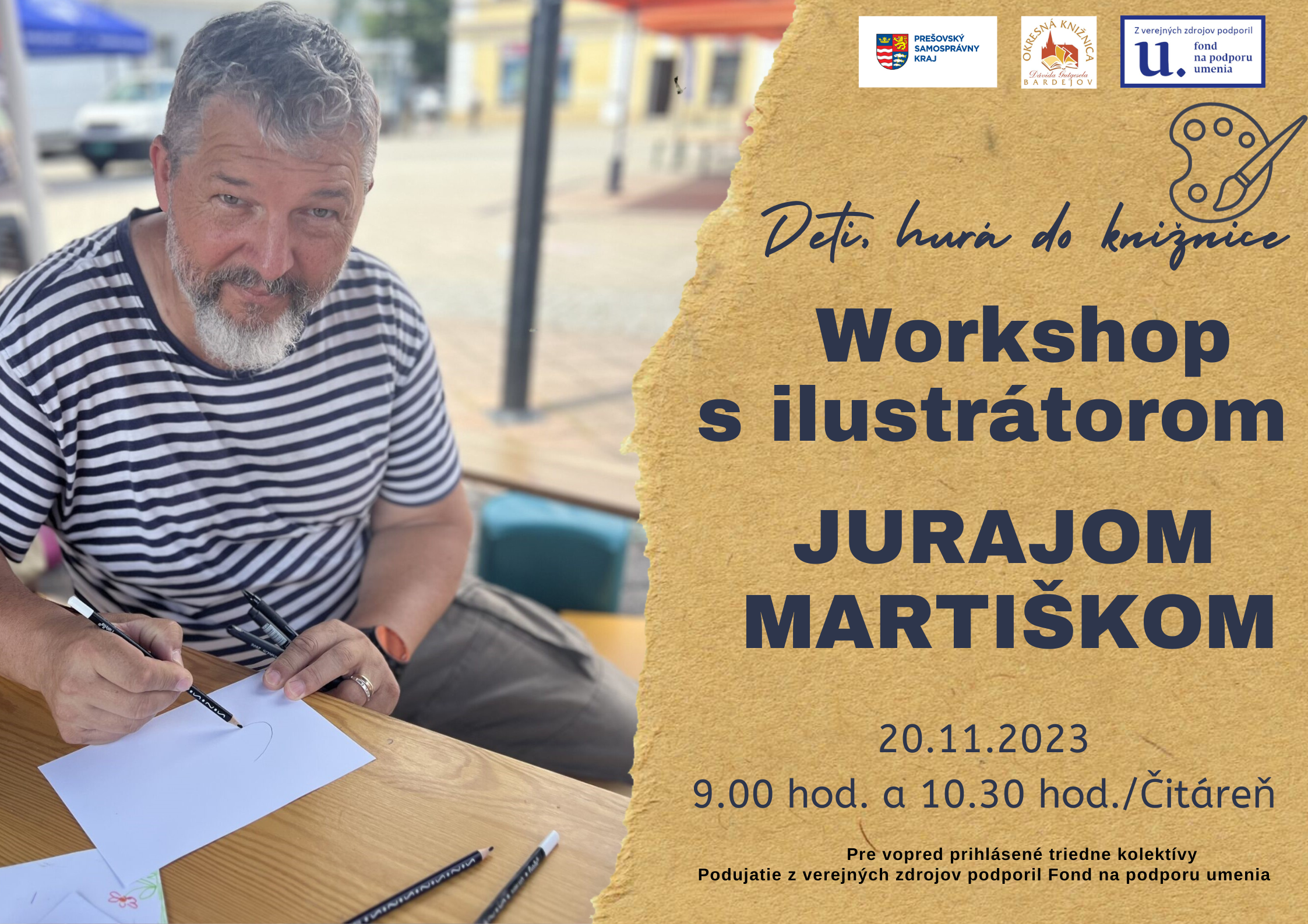 Dva workshopy s ilustrátorom a výtvarníkom Jurajom Martiškom. Workshop tematicky zameraný na ilustráciu.