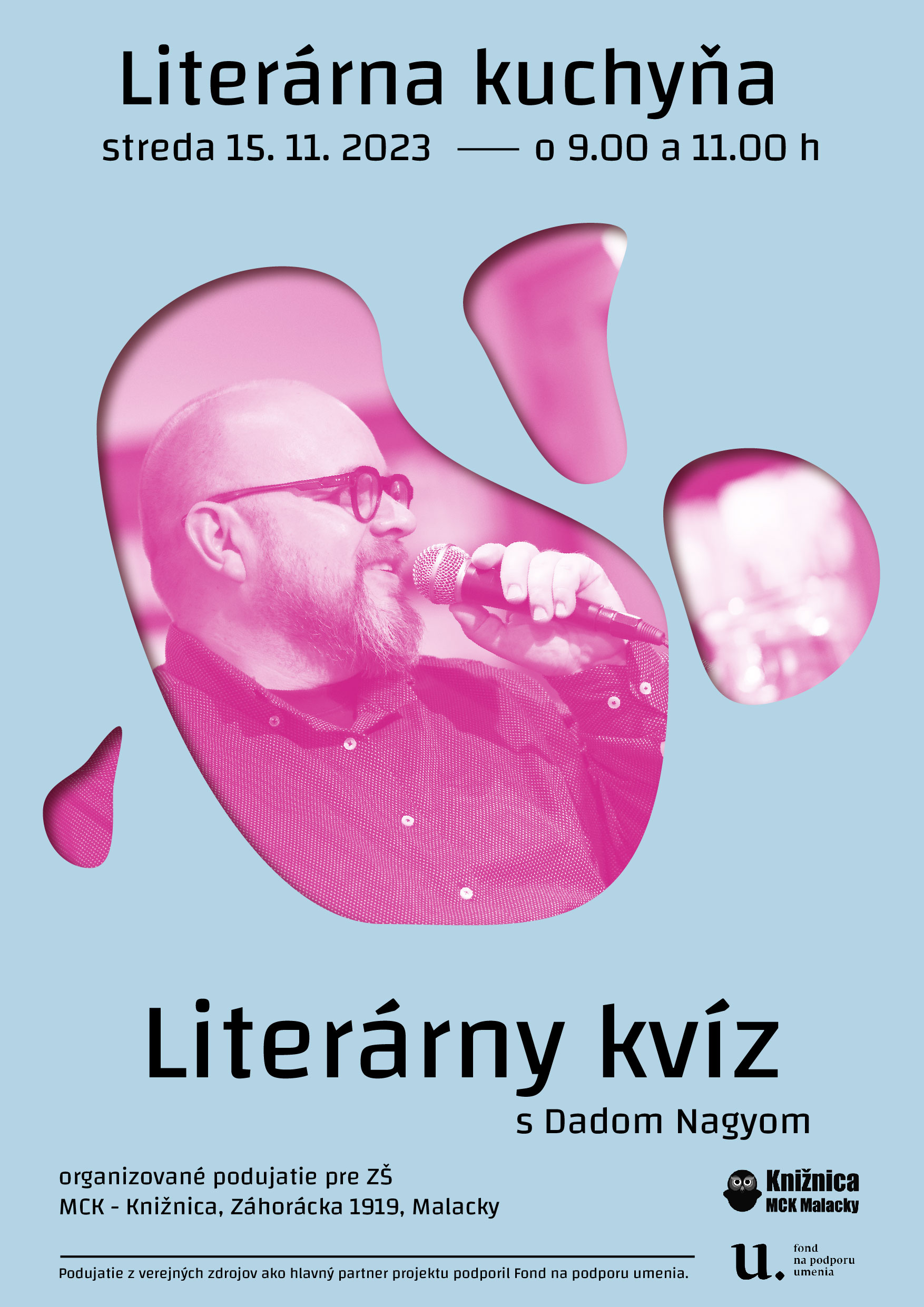 Knižnica MCK Malacky v Literárnej kuchyni namieša šiestu jesennú výchovno-vzdelávaciu kašu, ktorá podporuje čitateľskú gramotnosť, čiže trávenie kníh u detí a mládeže a ich záujem o literatúru. Pripravili sme pre žiakov organizované stretnutie s Dadom Nagyom. Vedomosti o knihách si žiaci môžu otestovať priamo s promotérom dobrej literatúry. Nemusia mať všetko prečítané, aby uspeli, určite sa však o knihách veľa dozvedia!