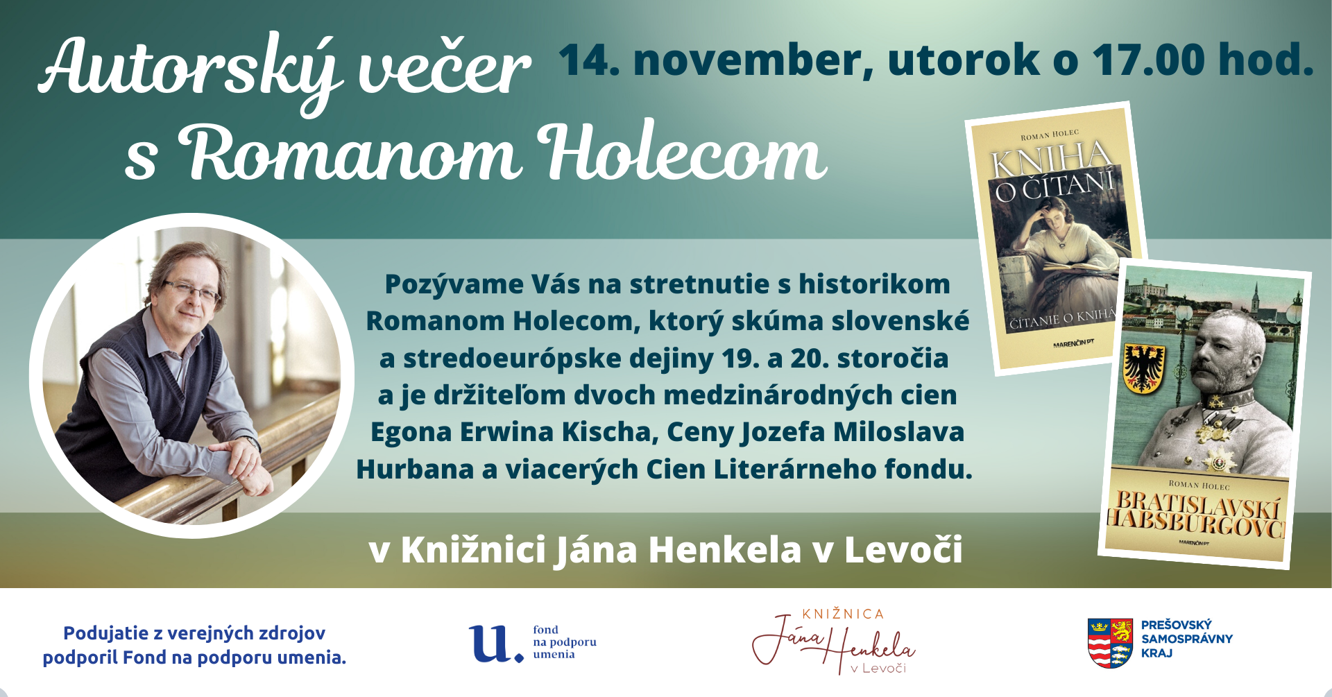 V rámci projektu Autorský večer s... pripravujeme pre čitateľov stretnutia s autormi súčasnej slovenskej literatúry. V novembri prijal pozvanie do našej knižnice historik Roman Holec.