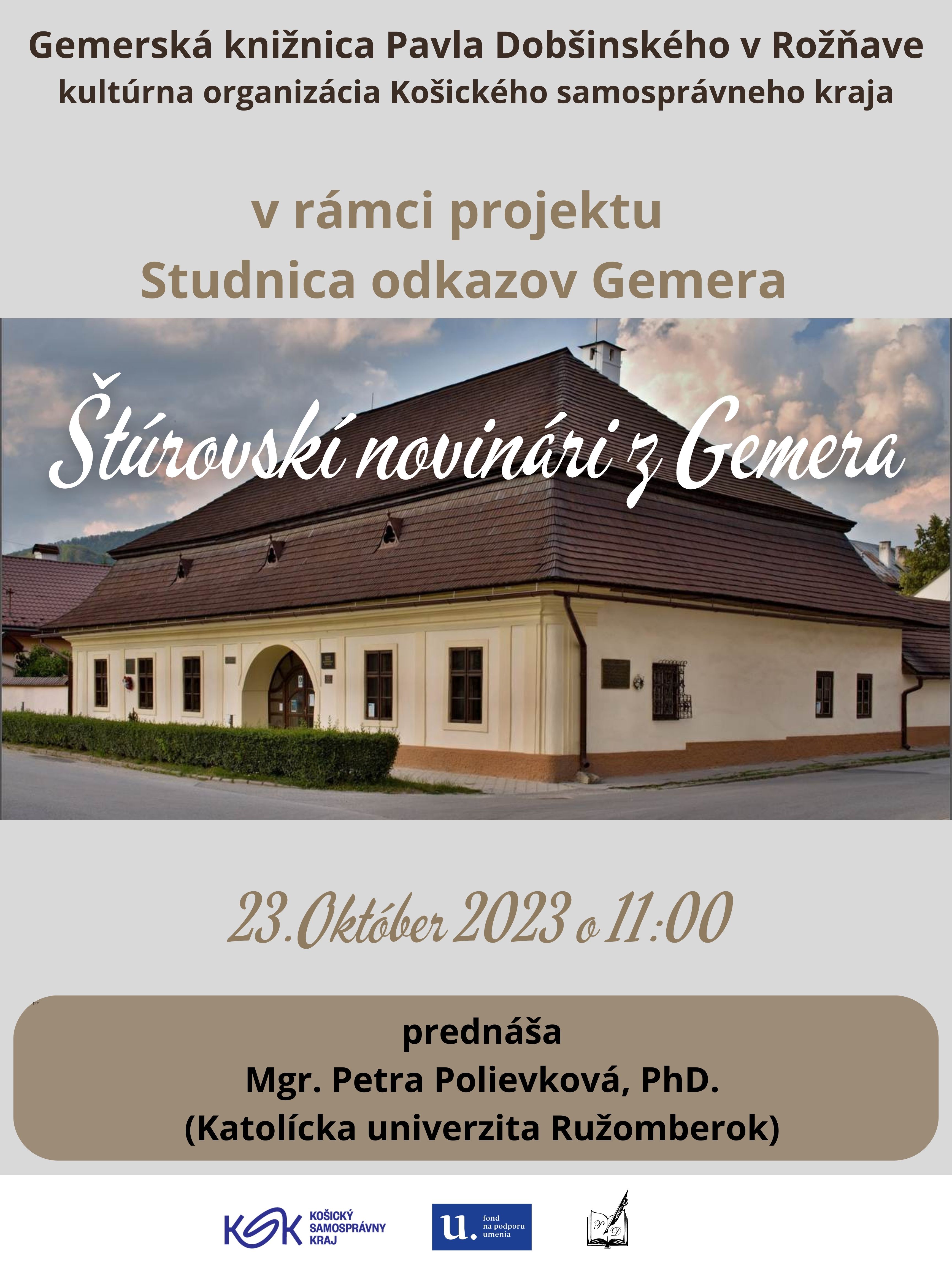 V roku 2023 si pripomenieme okrúhle výročia viacerých gemerských štúrovcov, Petra Kellnera Hostinského– 200. výročie narodenia a 150. výročie jeho úmrtia, Samuela Tomášika – 190. výročie narodenia a Pavola Emanuela Dobšinského – 195. výročie narodenia. Práve vďaka ich všestrannej činnosti boli položené základy vzdelanosti medzi prostým ľudom. Zámerom projektu je predstaviť mládeži a verejnosti činnosť týchto gemerských štúrovcov v oblasti šírenia spisovného jazyka do praxe ako živého jazyka ľudu