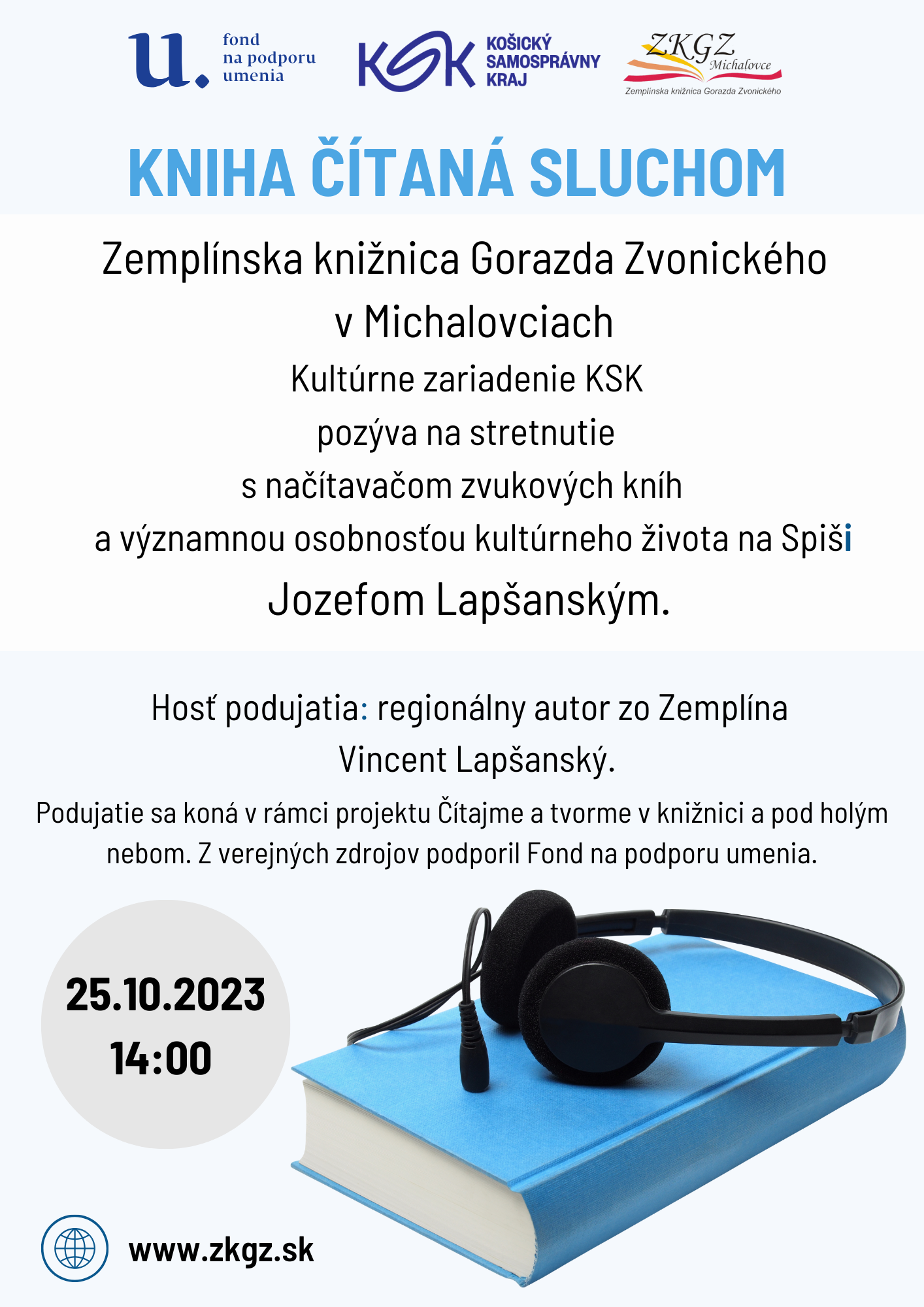 Kniha čítaná sluchom - lektor Jozef Lapšanský, prednáška pre zrakovo znevýhodnených.