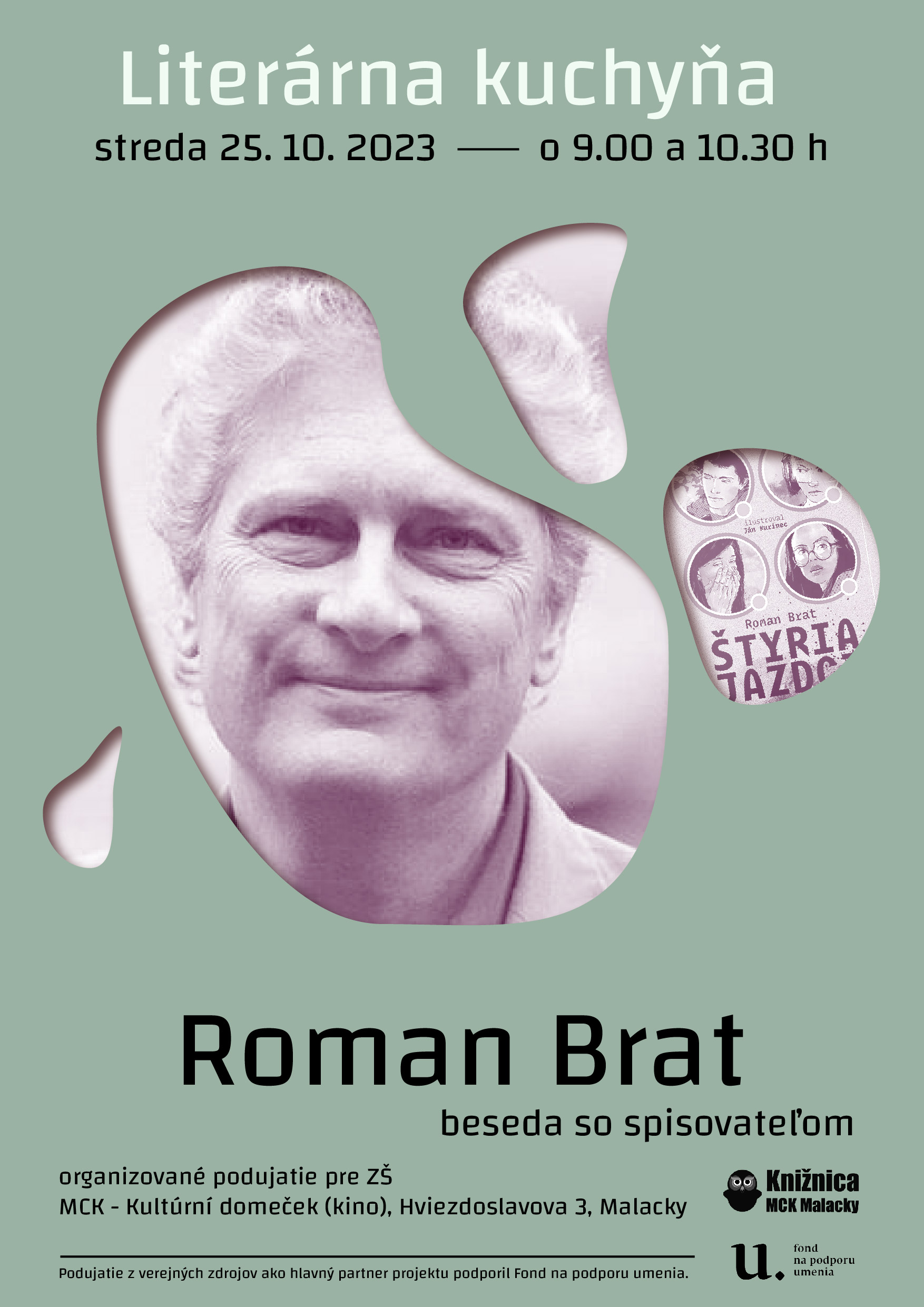 Knižnica MCK Malacky v Literárnej kuchyni namieša štvrtú jesennú výchovno-vzdelávaciu kašu, ktorá podporuje čitateľskú gramotnosť, čiže trávenie kníh u detí a mládeže a ich záujem o literatúru. Do našej kuchyne príde známy slovenský spisovateľ Roman Brat, ktorý píše knihy pre najmenších po tínedžerov a skúsi nám predstaviť svoje najúspešnejšie knihy medzi deťmi.