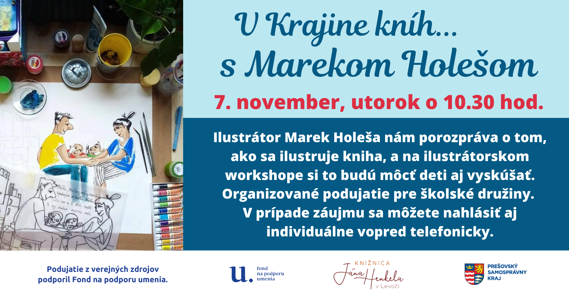V rámci projektu Krajina kníh si do knižnice pozývame autorov a ilustrátorov kníh pre deti a mládež. V novembri pripravil ilustrátor Marek Holeša pre deti aj ilustrátorský workshop.