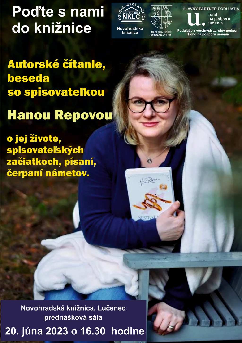 Beseda so spisovateľkou ženských románov Hanou Repovou, autorkou románov Boh plače potichu, Nestrať mapu k môjmu srdcu ...