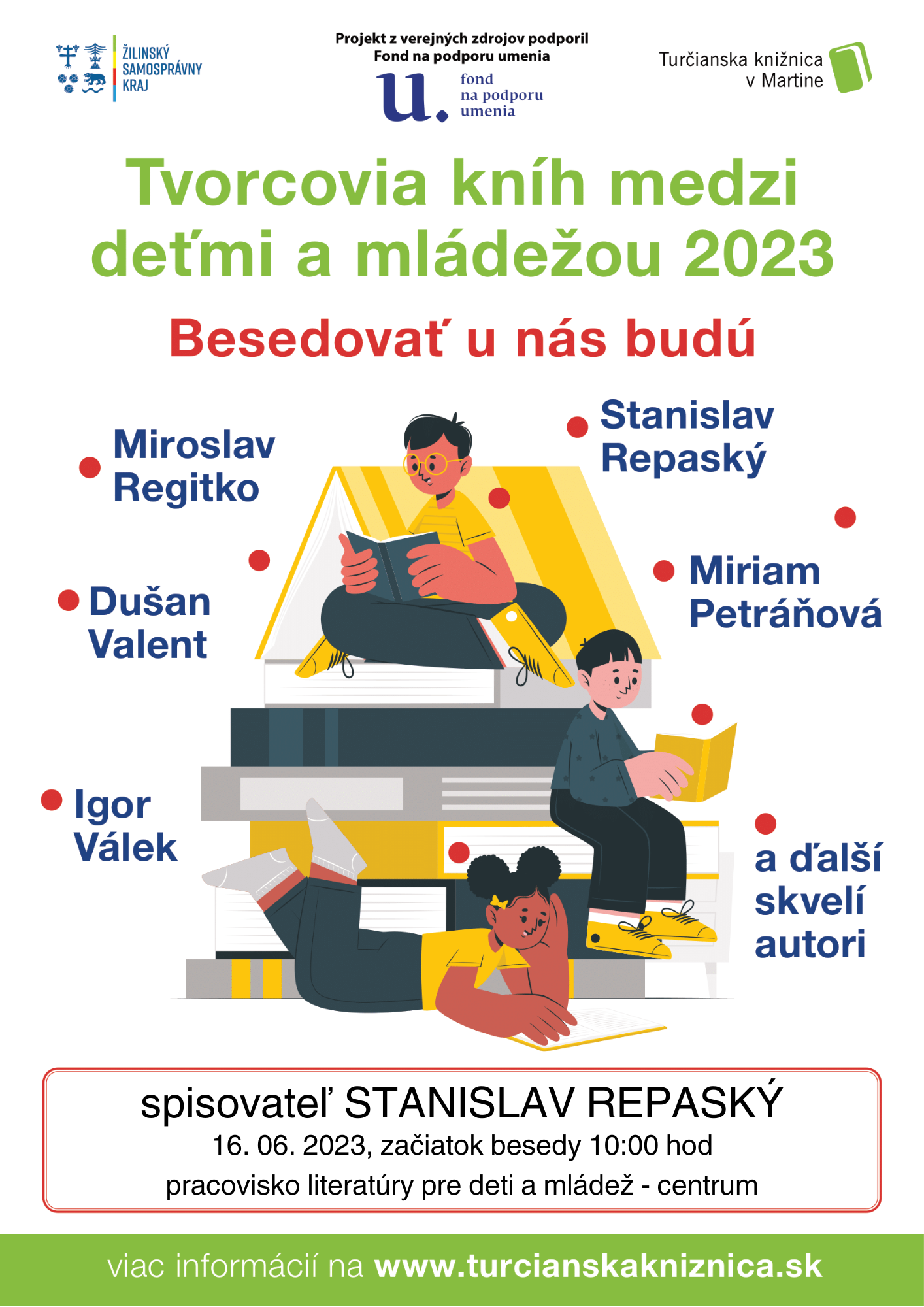 V Turčianskej knižnici v Martine sa dňa 16.6.2023 o 10:00 hod. uskutoční beseda so spisovateľom pre deti a mládež Stanislavom Repaským.