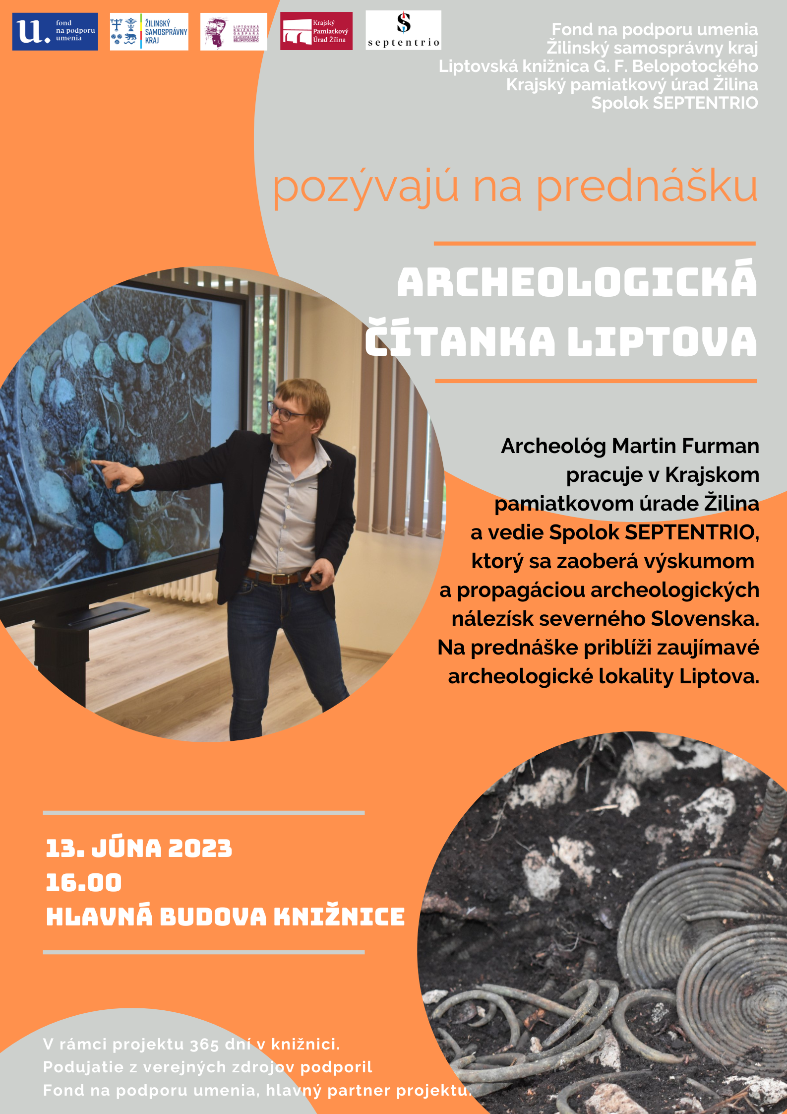 Archeologická čítanka Liptova - 3 prednášky archeológa Martina Furmana, dve pre školy a jednu pre verejnosť, 13.6.2023 o 9.00, 10.45 a 16.00 hod.
