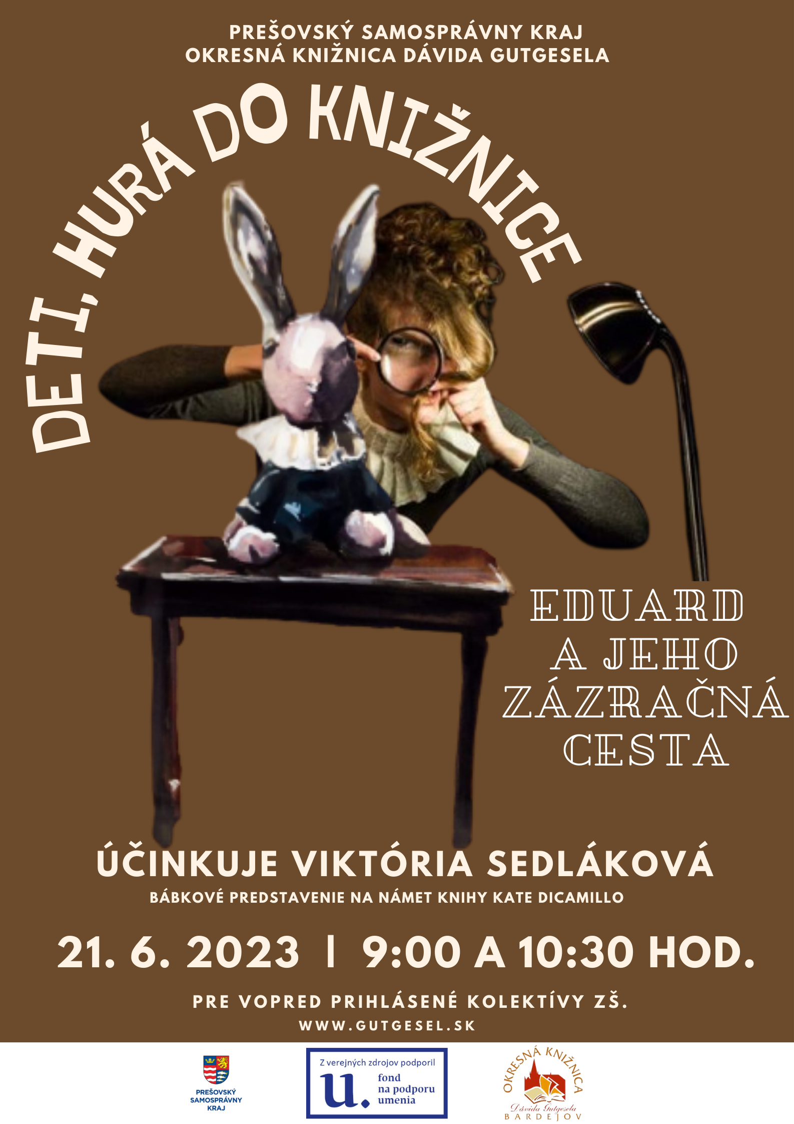 Divadelné predstavenie na námet knihy Cate DiCamillo s názvom Eduard a jeho zázračná cesta. Účinkuje bábkoherečka Viktória Sedláková.