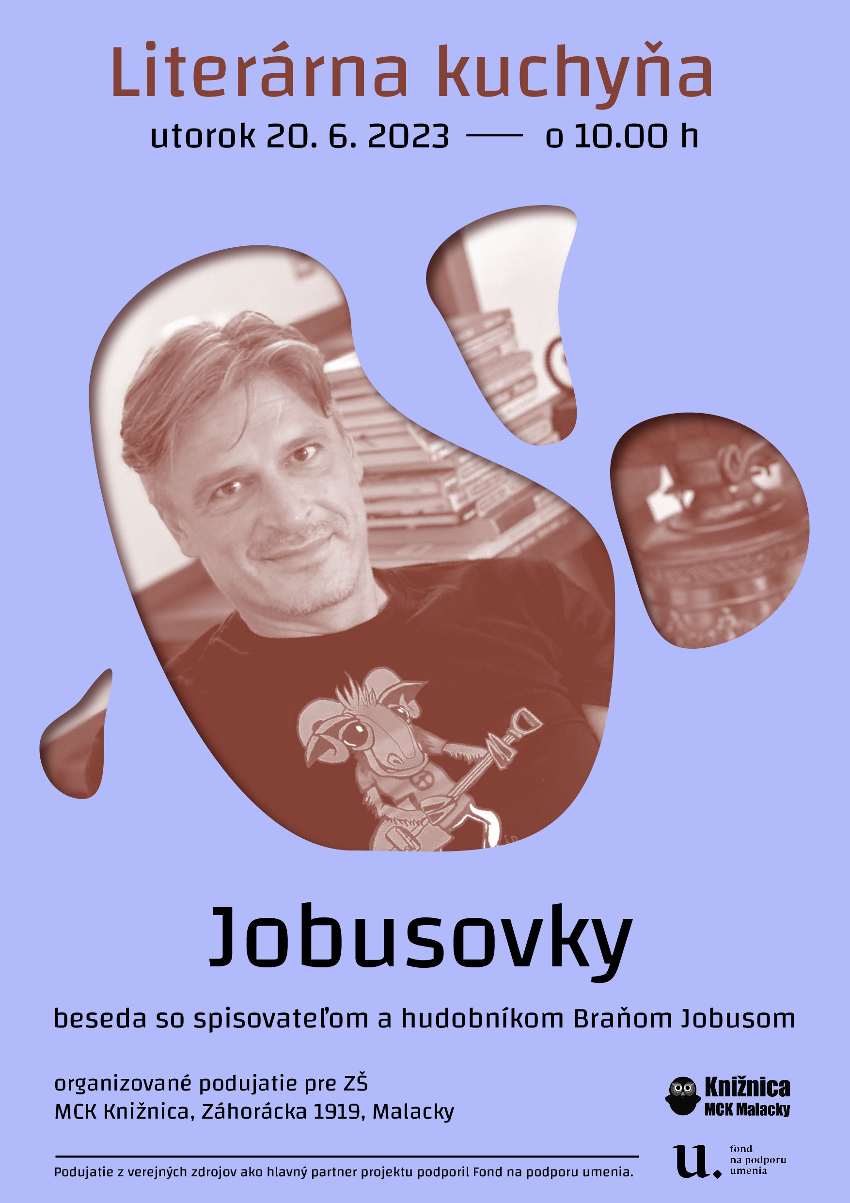 Knižnica MCK Malacky v Literárnej kuchyni namieša piatu a prvú letnú výchovno-vzdelávaciu kašu, ktorá podporuje čitateľskú gramotnosť, čiže trávenie kníh u detí a mládeže a ich záujem o literatúru. Pripravili sme pre žiakov základnej školy organizované stretnutie so spevákom, hudobníkom a autorom o knihách pre deti a nielen o nich. V našej kuchyni privítame Braňa Jobusa a jeho najnovšie knihy - jobusovky, o ktorých nám nielen porozpráva, ale aj zaspieva.