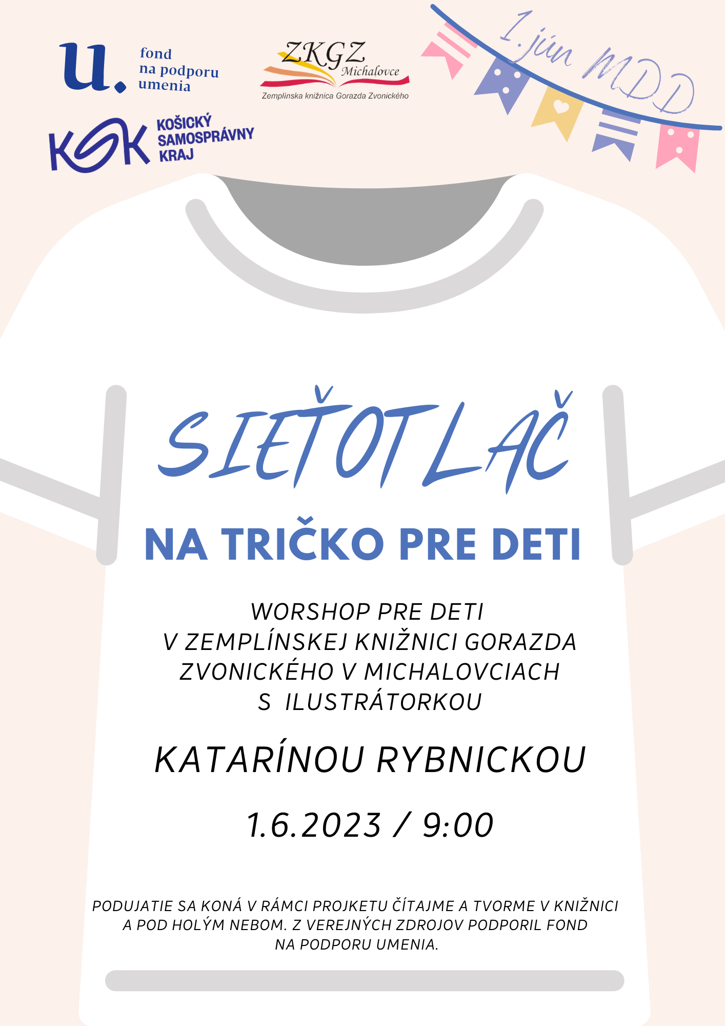 Stretnutie s ilustrátorkou Katarínou Rybnickou. Na workshope pre deti predstaví sieťotlač na tričko.