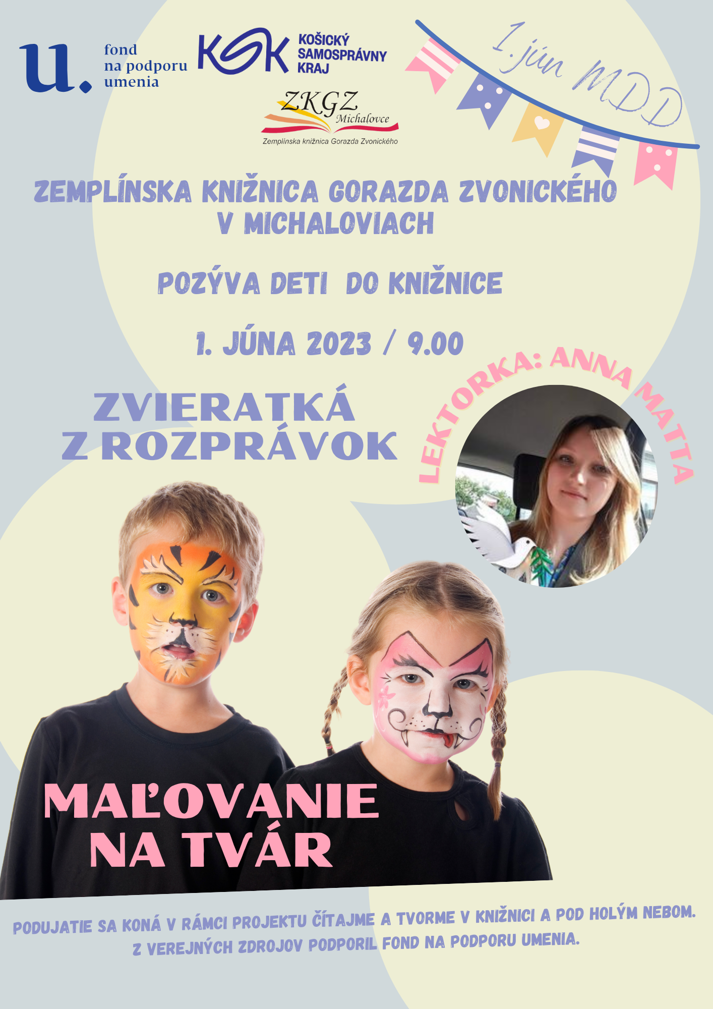 Zvieratka z rozprávok - maľovanie na tvár. Stretnutie s akademickou maliarkou Annou Mattou.