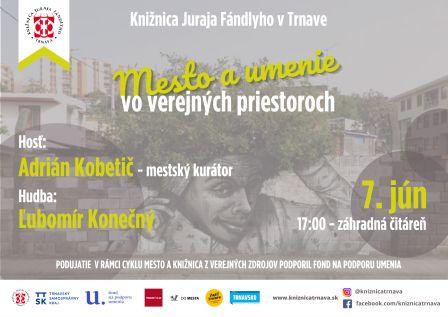 Od roku 2021 má mesto Trnava mestského kurátora. Stal sa ním absolvent študijného odboru dejiny a teória umenia Adrián Kobetič, ktorý je nielen historicky prvým mestským kurátorom v Trnave, ale aj na Slovensku. Jeho úlohou je starať sa o existujúce umelecké diela mesta, mapovať ich, zabezpečovať ich prezentácie či reštaurovanie. Prijal pozvanie našej knižnice na prednášku na tému Mesto a umenie vo verejných priestoroch. Hudba Ľubomír Konečný.