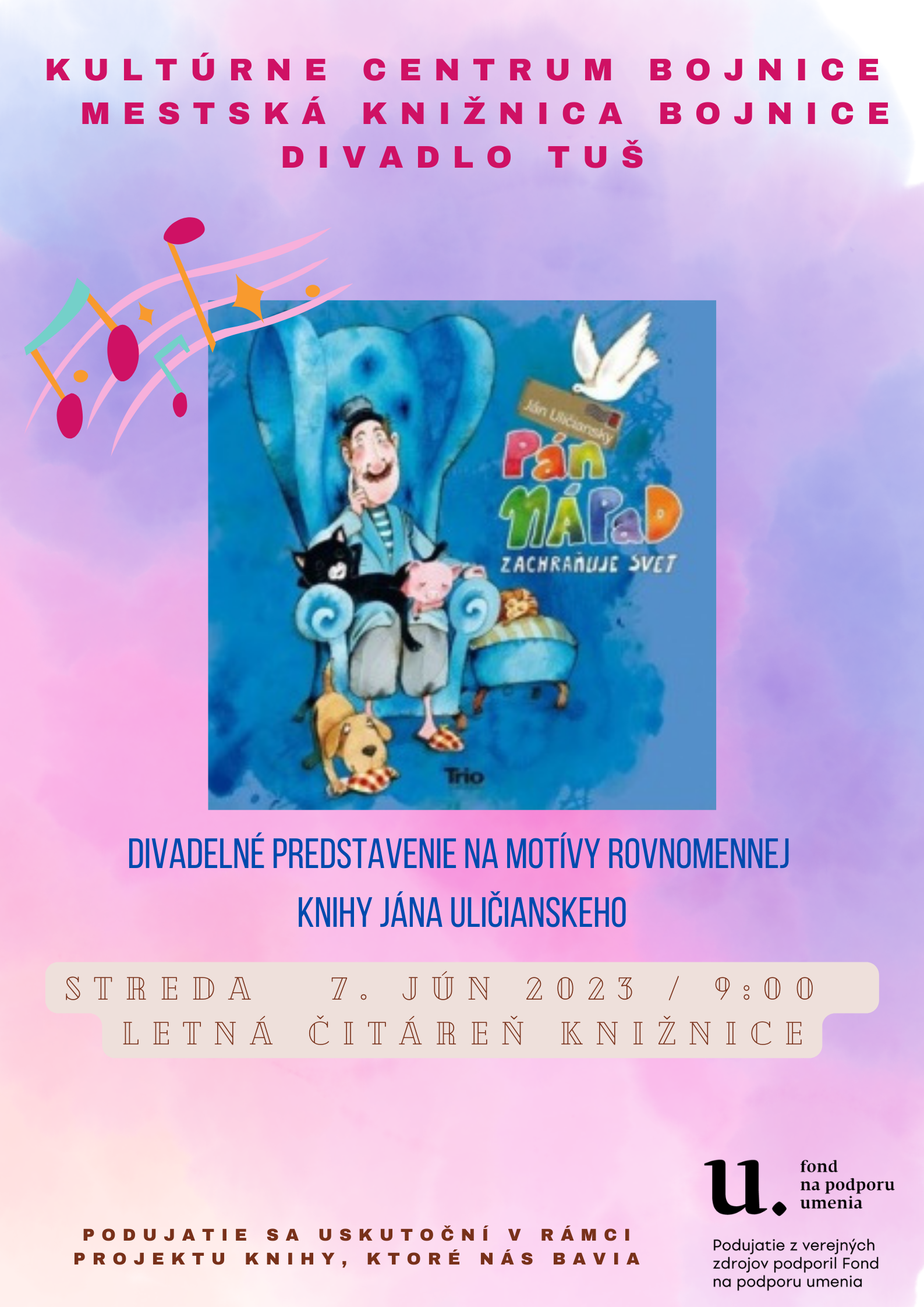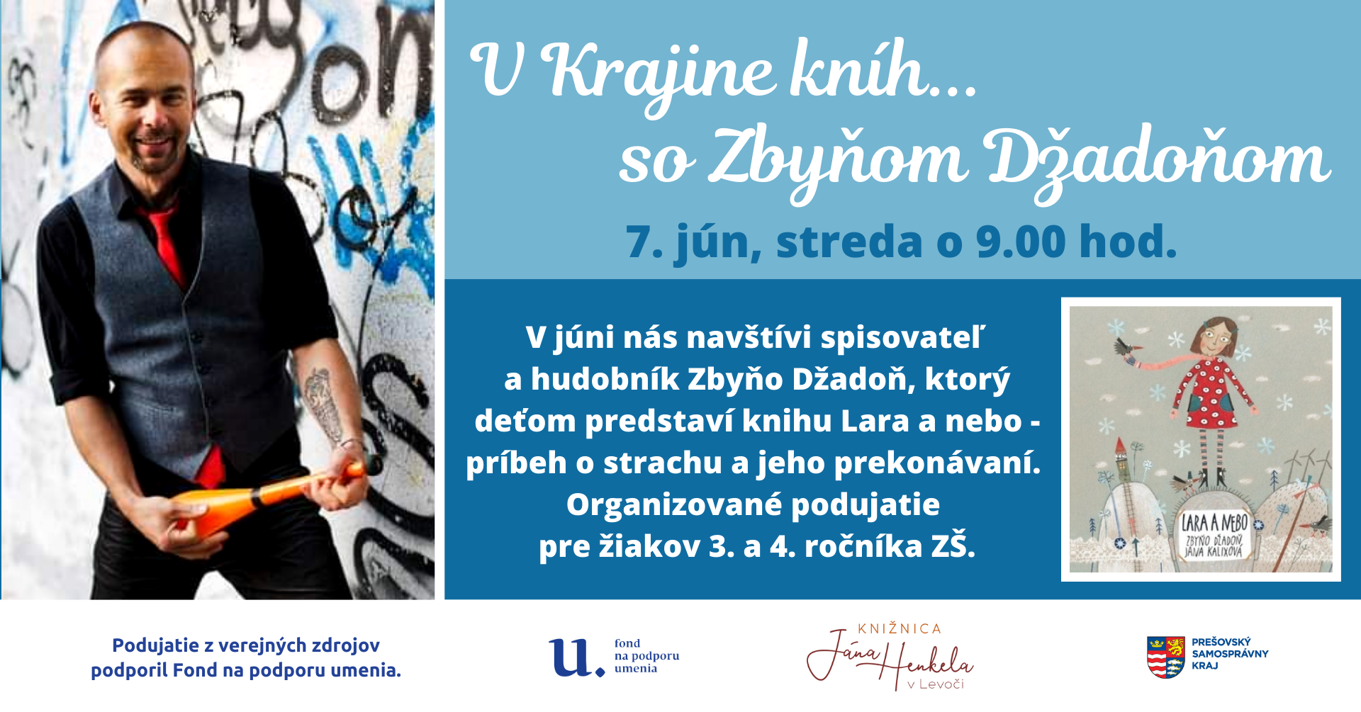 V rámci projektu Krajina kníh si do knižnice pozývame zaujímavých slovenských autorov a ilustrátorov detských kníh. V júni nás navštívi spisovateľ a hudobník Zbyňo Džadoň, ktorý deťom predstaví knihu Lara a nebo - príbeh o strachu a jeho prekonávaní.