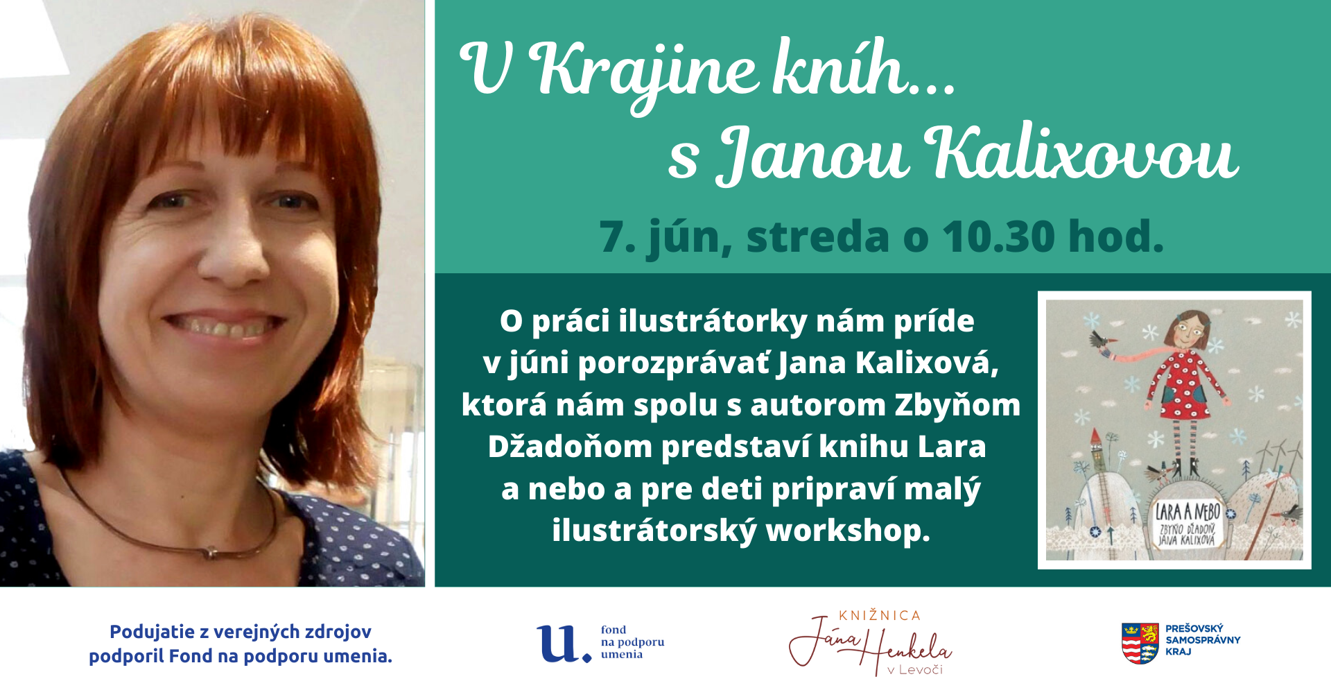 V rámci projektu Krajina kníh si do knižnice na stretnutia s deťmi pozývame zaujímavých slovenských autorov a ilustrátorov detských kníh. V júni nás navštívi ilustrátorka Jana Kalixová.